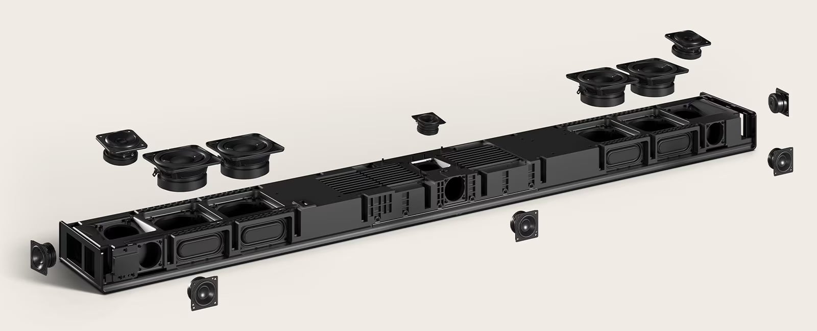 A H7 hangprojektor rengeteg hangszórónak ad otthont, és önmagában is nagyon jó térhangzást lesz képes elérni. A berendezés a hangprojektorok ligájában elsőként ad teret a Dolby Atmos FlexConnect technológiának, ami arra nyújt lehetőséget, hogy a szobában különböző helyekre lepakolt vezeték nélküli hangszórókat tökéletes összhangba hozza. Az LG és a Dolby csapata kollaborációban dolgozott azon, hogy az LG Sound Suite a lehető legjobb színvonalon legyen képes élőben biztosítani a Dolby Atmos FlexConnect által ígért felhasználói élményt.