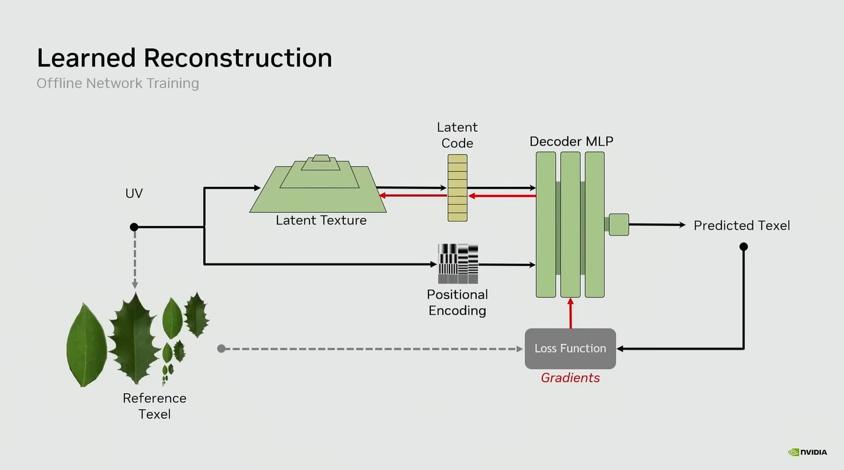 Az újítás egy AI alapú textúrageneráló technológia, ami segít abban, hogy magas minőségű textúrákat lehessen létrehozni, mindezt hatékony erőforrás-felhasználás mellett, a jelenlegihez képest akár hétszer kisebb VRAM felhasználás mellett. A hagyományos textúrák esetében blokk alapú tömörítést használnak, ami lehet BC5, BC6, illetve akár BC7 típusú is; ezek mindannyian 4x4 pixeles formátummal rendelkeznek és a GPU rendereli le őket. Az Nvidia csapata létrehozott néhány kisebb neurális hálózatot, amelyeket úgy tréningeztek, hogy azokkal létre lehessen hozni a kívánt pixelformátumot és textúramegjelenést úgy, hogy a textúrák mérete csak töredéke a tradicionális textúramérethez képest.