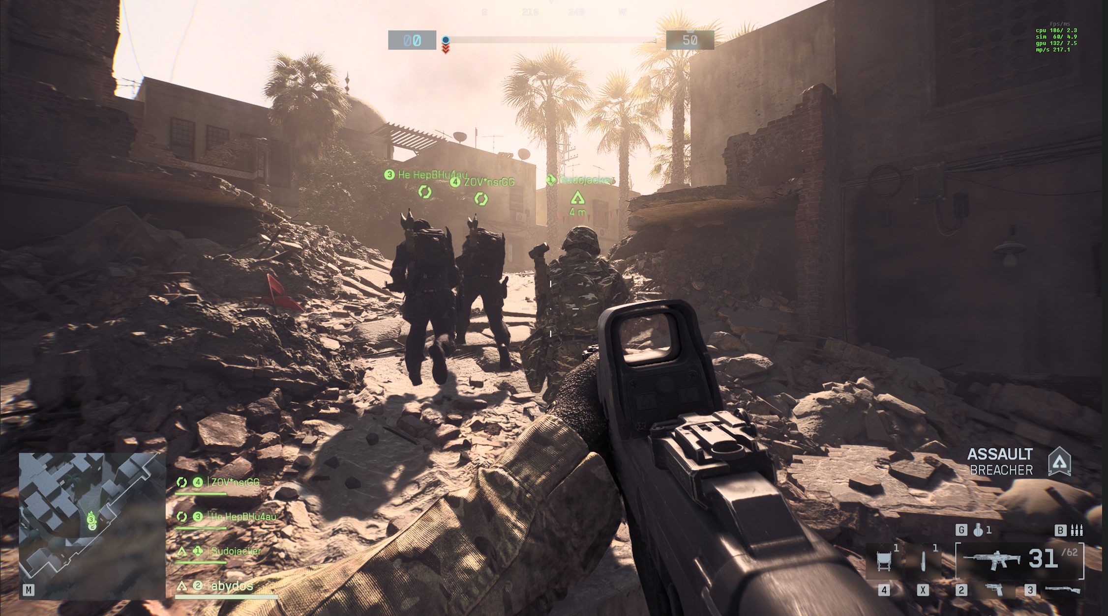A másik hihetetlen történet, az pedig az optimalizáció. Egyszerűen a DICE és a többi csapat olyan munkát végzett, amilyet ritkán látunk manapság az AAA játékiparban is. Amikor a Borderlands 4 5090-es RTX kártyákon is szaggat, egyszerűen megmutatkozik a szoftvermérnöki csapatok közötti dimenziókon átívelő különbség. Míg a Gearbox pontosan olyan szakértelemmel optimalizálta a saját játékát, mint ahogyan egy alsós általános iskolás énekszakos kilenc éves tenné meg, addig a Dice olyan látványt kalapált össze a Xbox Series S-re is stabil 60FPS-sel, hogy besírsz. PC-n megköveteli az RTX kártyát és a Radeon RX 5600-as szériát, ám a vicc az, hogy még egy őskövület, majdnem tíz éves, 3 gigás GTX 1060-as kártyával is el lehet érni a multiplayerben a stabil 40-50 FPS-t!