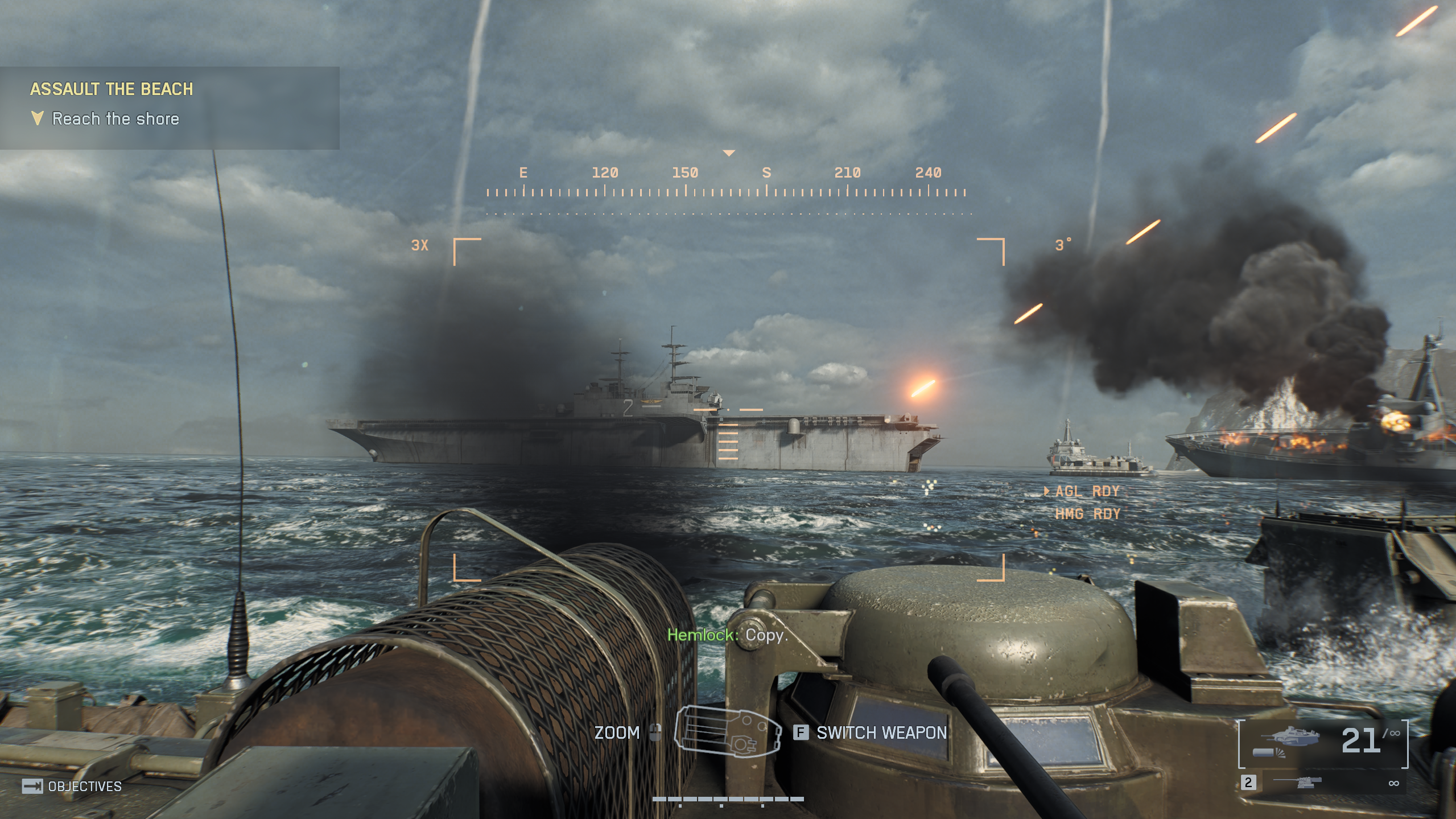 A 2. és a 3. küldetés egy helyen játszódik, csak két különböző nézőpontból. Elképesztő látványt nyújt a játék, mindenhol robbanások, látványos mesterlövészkedős és utcai harcok, partraszállás, New York stb. Eléggé változatos és érdekes a játék ebből a szempontból. A varázs azonban hamar tova száll, ám még így is jóval erősebb marad a kampány, mint a mostani CoD játékok esetében. A sztorira tehát nem is nagyon mennék rá, a legtöbb küldetés menj ide, lopakodj oda, ölj meg mindenkit alapon működik. Agykikapcsolásnak jó, látványos, de láttunk már ilyet sokszor.