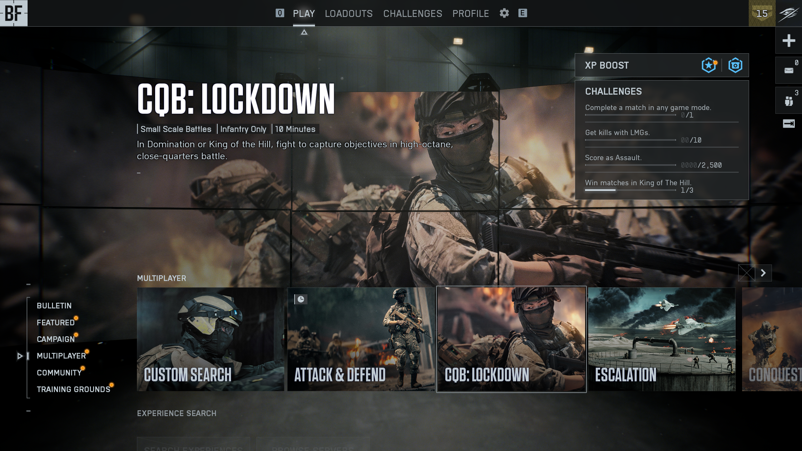 A másik kedvencem a Squad Deathmatch, ami ha jól emlékszem a BF3-ban jelent meg először. A lényege, hogy 4x4 fős csapatok harcolnak egymással. Az a csapat nyer, aki előbb eléri az 50 pontot. Mini BR/TDM keverék, ami érdekes squad harcokat tesz lehetővé.