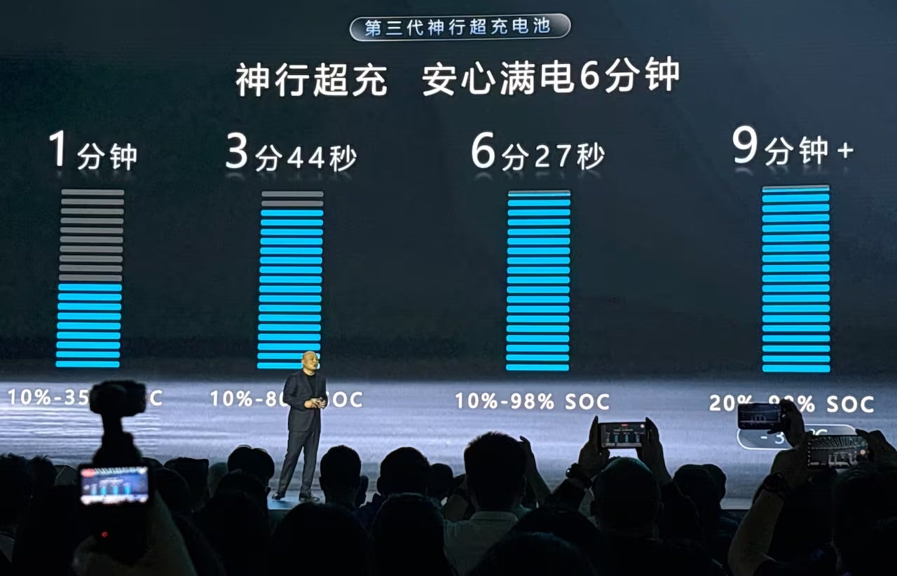 A harmadik generációs Qilin akkumulátor már egészen brutális, 3000 kWh-s teljesítményleadásra képes amellett, hogy gond nélkül elviseli a folyamatos 10C gyorstöltést. Ez azt jelenti, hogy minden korábbinál erősebb villanyautókat építhetnek a gyártók az új alapra, és elméletileg akár 6 perc elegendő lehet a telep feltöltésére (10-98%) – persze ehhez egyedi töltőre van szükség példátlan teljesítménnyel. Még -30 fokos fagyban is 9 perces töltés érhető el a CATL szerint (20-98%).