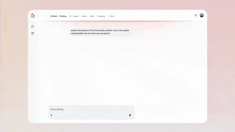 A Google Keresőben a Gemini 3 Pro modellel felturbózott AI-mód már ugyanolyan fejlett feldolgozási technikával fog dolgozni, mint a Gemini 2.5 Pro. Ennek köszönhetően pontosabban tudja majd értelmezni az információkat, és hatékonyabban segítheti a felhasználókat a megfelelő válaszok megtalálásában. Olyan információkhoz is hozzájuthat a felhasználó a Gemini 3 Pro és az AI-mód révén a Keresőben, amik korábban nem kerültek volna képbe.