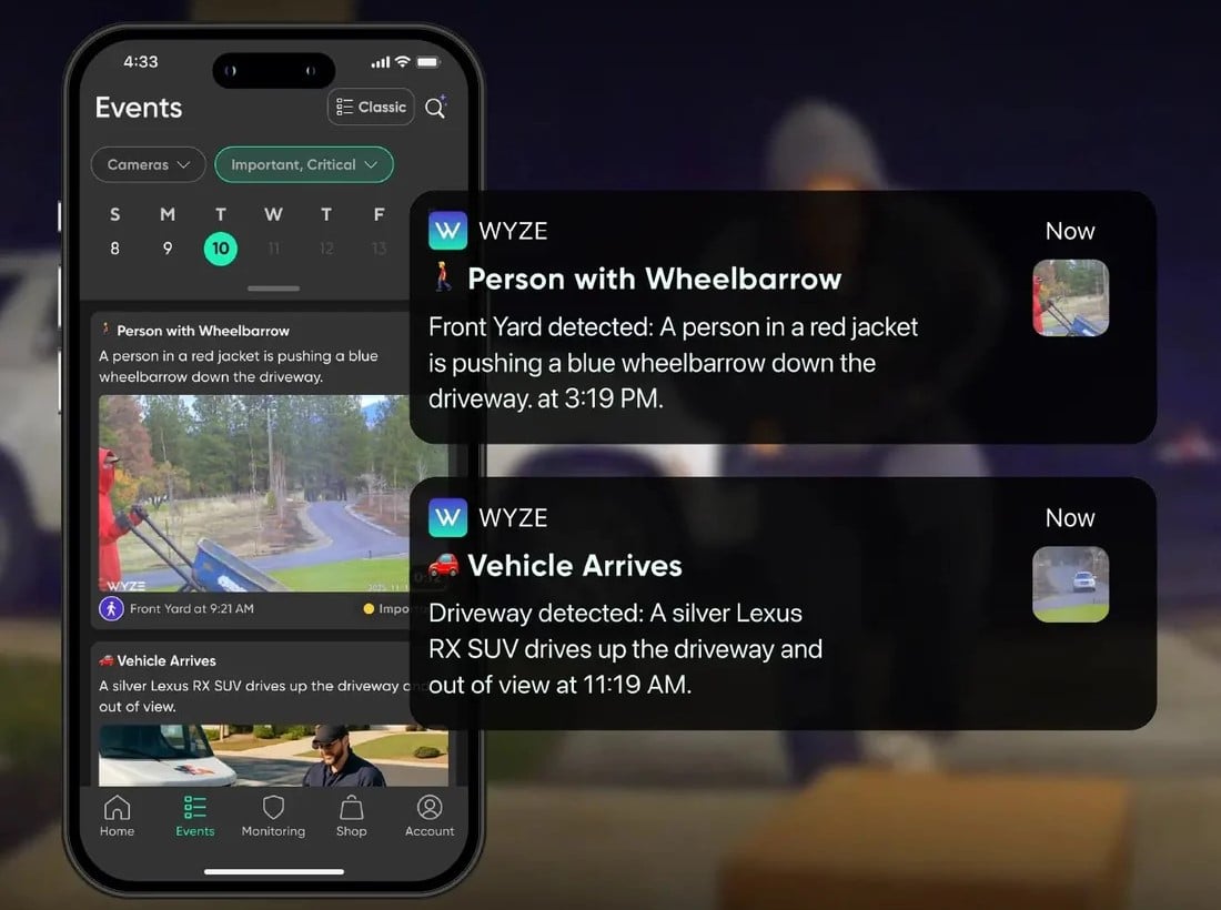 A Wyze esetén a szoftvernek nagyon fontos szerepe van, a cég ugyanis mesterséges intelligenciával megtámogatott felismerő és riasztó funkciókkal szolgál az előfizetőinek. Generatív MI-t alkalmaz arra, hogy a felhasználóknak a rendszer képes legyen úgy jelezni, hogy konkrét leírással is szolgál arról, hogy mit észlelt.