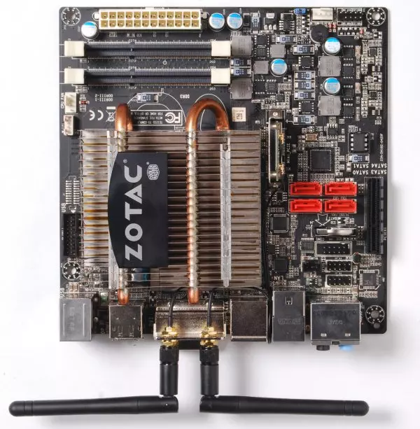 A Zotac mérnökei passzív hűtőbordát terveztek a Hudson M1-es lapkakészlet, illetve az AMD E-350-es APU hűtésére, ami egy elegáns, tökéletesen hangtalan megoldás. Hasonlót az ASUS mini-ITX formátumú Brazos alaplapján is láthatunk, amely felszereltség tekintetében túl is tesz a Zotac megoldásán.
