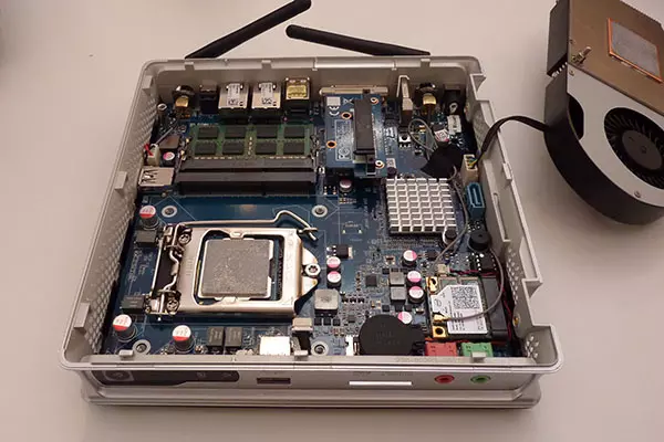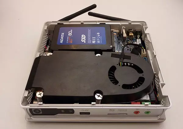 Mivel az újdonság rendkívül kompakt, így a hűtés teljesítménye is limitált: a kiszemelt LGA-1155-ös Intel processzor maximum 45 wattos TDP-vel rendelkezhet, ami erősen behatárolja a lehetőségeket. Maga a processzorhűtő egyébként egy érdekes szerkezet, hiszen úgy néz ki, mintha egy belépő szintű asztali videokártya hűtése lenne.