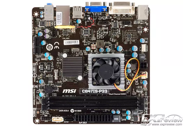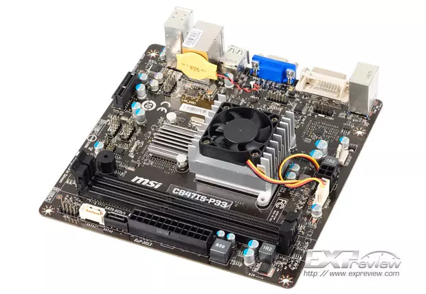 Az MSI alaplapján a Celeron 847-es processzor mellett Intel NM70-es lapkakészlet is helyet kapott. A processzor hűtéséről egy kisméretű, ventilátorral is ellátott hűtőtömb gondoskodik, a lapkakészletet azonban csak egy parányi passzív hűtőborda hűti. Memóriafoglalatból kettőt kapunk, amelyekbe könnyedén bepakolható akár 16 GB-nyi DDR3-1333 MHz-es rendszermemória is.