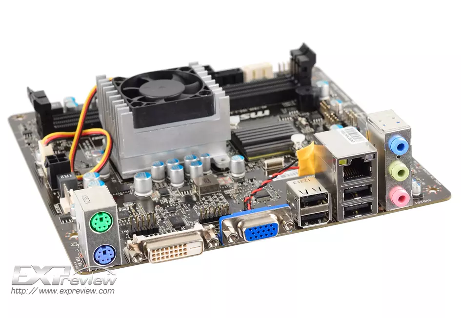 portokból egy SATA 3 Gbps-os és egy SATA 6 Gbps-os példány áll rendelkezésre, USB 3.0-s csatlakozók azonban nincsenek. A videó kimenetek között egy DVI és egy D-Sub portot találunk. A termék ezek mellett Gigabites Ethernet vezérlővel és hatcsatornás HD audió vezérlővel is rendelkezik, sőt, néhány USB 2.0-s portot is kínál.