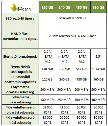 Az új SSD meghajtókkal kapcsolatos legfontosabb információkat az alábbi táblázatban összegeztük.