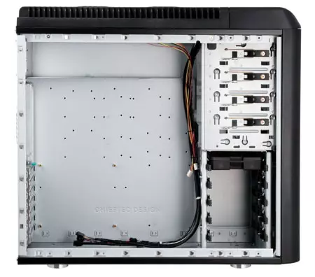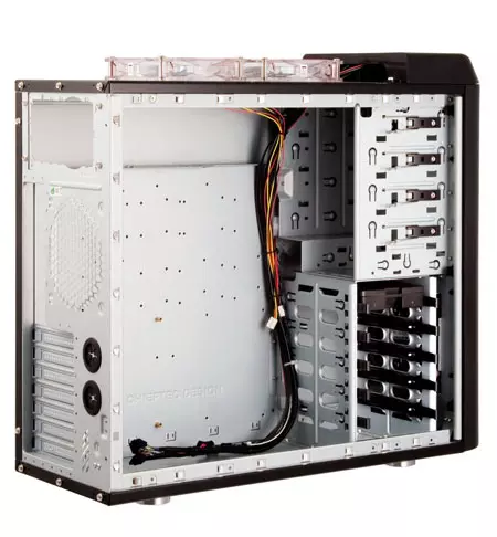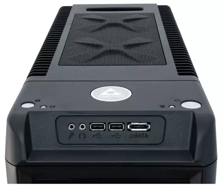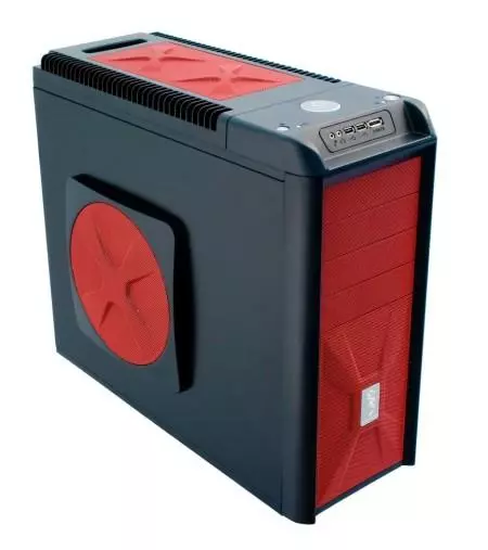 A tápegység nélküli termék külsőleg letisztult dizájnnal bír, a ház megtervezésekor fontos szempont volt az ergonomikus felépítés. A csúnyának egyáltalán nem mondható PC kuckó tetején az összes szükséges gombot és csatalakozót megtaláljuk, köztük a bekapcsoló- és reset gombokat, a két darab USB, az Audio és az egy darab eSata csatlakozót is. A felsorolt kellékek egy könnyen hozzáférhető helyen találhatóak. A megfelelő hűtésről a bal oldallapon egy 220 mm-es átmérőjű ledes ventilátor gondoskodik, de a ház tetején további két darab 120 mm-es légkeverő, a ház elején pedig egy darab 120 mm-es ventilátor teljesít szolgálatot. A ház hátulján gyárilag ugyan nincs ventilátor, ám a kialakított helynek köszönhetően bármikor javíthatjuk a szellőzést egy 120 mm-es ventilátor beszerelésével. A ház 540 x 205 x 480 mm-es méretekkel és 11 Kg-os súllyal bír. Az újdonság kétféle kivitelben lesz elérhető: az egyik megoldásnál teljesen fekete lesz, míg a másiknál piros dizájnelemekkel is el lesz ellátva a termék.