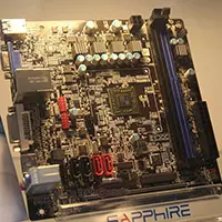 Még ennél is érdekesebb produktum a Sapphire IPC-FS1r2A75. Ez a deszka a szabadalmaztatott IPC formátumot tudhatja magáénak, FS1 rev 2.0 processzorfoglalattal, melyben R-sorozatú APU-k foglalhatnak helyet nem szokványos IGP társaságában. Az integrált AMD Radeon E6000 családba illeszkedő GPU már a Graphics CoreNext architektúrán alapszik, és saját, dedikált GDDR5-ös memóriákkal van kiegészítve a lapkán, így nem szenved az alacsony memória-sávszélességtől. Az alaplap komponenseit egy AMD A75 FCH vezérli. Meghökkentő e típus kimenetkínálata is, mivel a nyomtatott áramkörre integrálva hat darab mini-DisplayPortot és négy darab HDMI kimenetet lehet összeszámolni. Rendszermemóriának SO-DIMM modulokra lesz szükség, mivel két darab ennek megfelelő sín áll rendelkezésre. Adott egy lezáratlan végű PCI-Express 2.0 x4-es slot, négy darab mPCI Express felület, öt darab SATA 6 Gb/s csatoló, hat darab USB 3.0, két darab gigabites ethernet csatlakozás és egy 6 csatornás audio vezérlő. Mindezen paraméterek megismerése után már könnyedén kijelenthető, hogy a Sapphire a IPC-FS1r2A75-t nem kimondottan otthoni felhasználásra szánja.