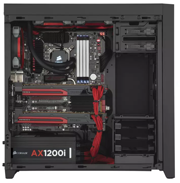 5,25 hüvelykes, szerszámok nélkül szerelhető bővítőhelyből kettőt kapunk, 3,5 hüvelykes és 2,5 hüvelykes meghajtókat fogadó fiókokból pedig hármat kínál az újdonság. Ezek a fiókok egy kivehető keretben kaptak helyet. Az alaplaptálca hátulján két darab extra, szerszámok nélkül szerelhető 2,5 hüvelykes bővítőhely is lapul. A kábelek elrendezésében gumibetéttel ellátott alaplapi kivágások segítenek, az alaplaptálca mögött pedig elegendő hely van ahhoz, hogy a különböző kábeleket kényelmesen elvezethessük. Az újdonság processzorhűtőből maximum 165 milliméter magasat fogad, a videokártyák számára pedig 430 milliméternyi helyet kínál. Tápegységből maximum 200 milliméter hosszú példány fér el.