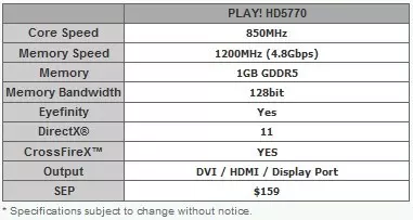 Az AMD egyik neves videokártya gyártó partnere, a PowerColor egy új terméket mutatott be amely a Radeon HD 5700-as sorozatba tartozik és egyedi, hatékony hűtéssel van felszerelve. A PowerColor PLAY! HD 5770-es névre keresztelt termék csak és kizárólag digitális kimenetekkel büszkélkedik: a csatlakozók sorában egy DVI, egy DisplayPort és egy HDMI port foglal helyet, amelyekkel természetesen zökkenőmentesen igénybe vehető az AMD többmonitoros támogatása, az Eyefinity technológia, azaz egy időben akár három monitor meghajtására is képes a kártya.