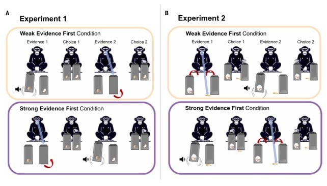 Amikor egy esküdtszék egy tárgyaláson mérlegeli a tanúk vallomásait, vagy amikor az ablakon kinézve döntünk arról, mit vegyünk fel aznap, egy olyan komplex képességet használunk, amelyet egykor kizárólag az embereknek tulajdonítottak: különböző bizonyítékok jelentőségét mérlegeljük. De mostanra kiderült, hogy legközelebbi élő rokonaink, a csimpánzok is képesek erre, hogy racionális döntéseket hozzanak.