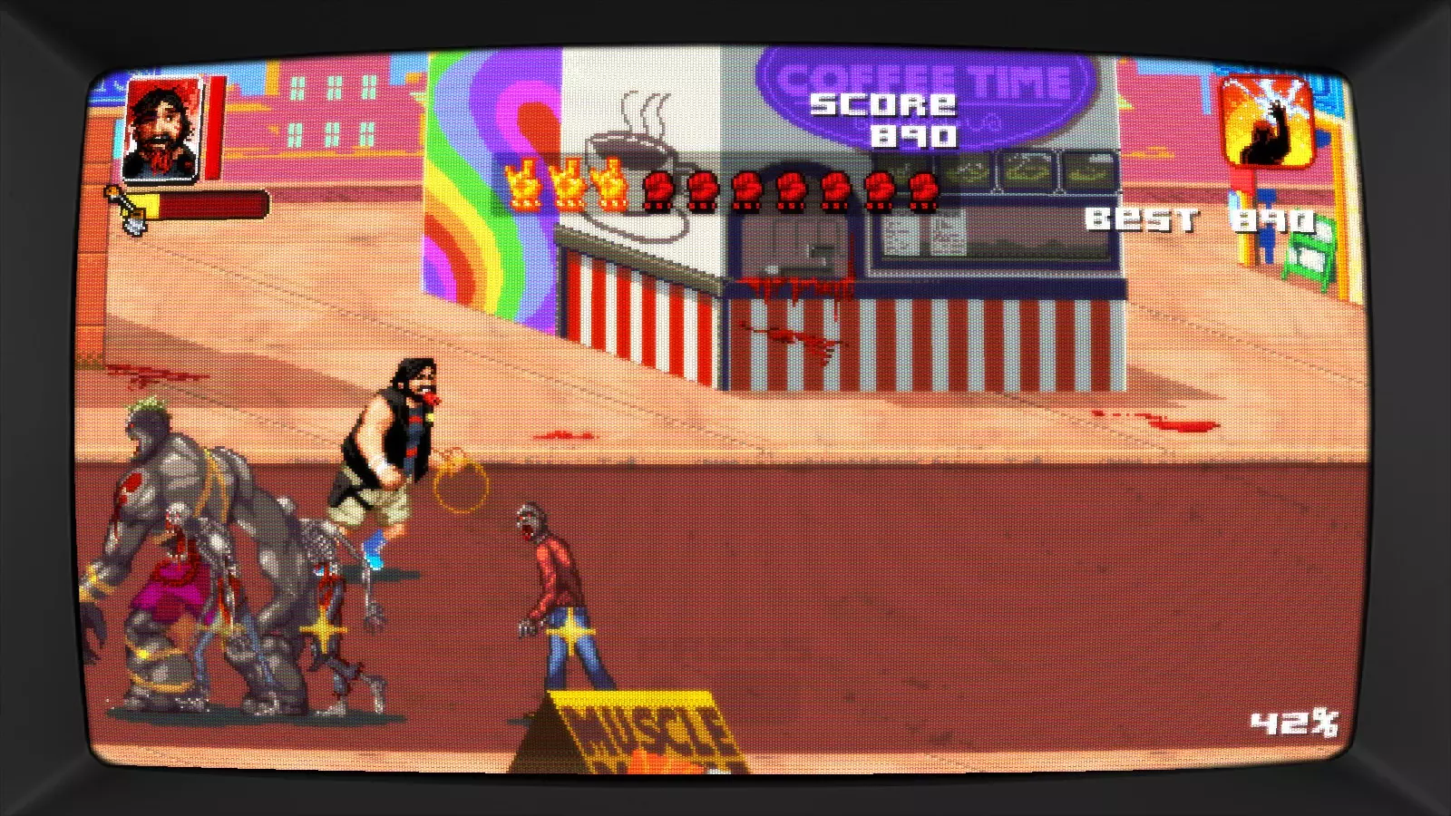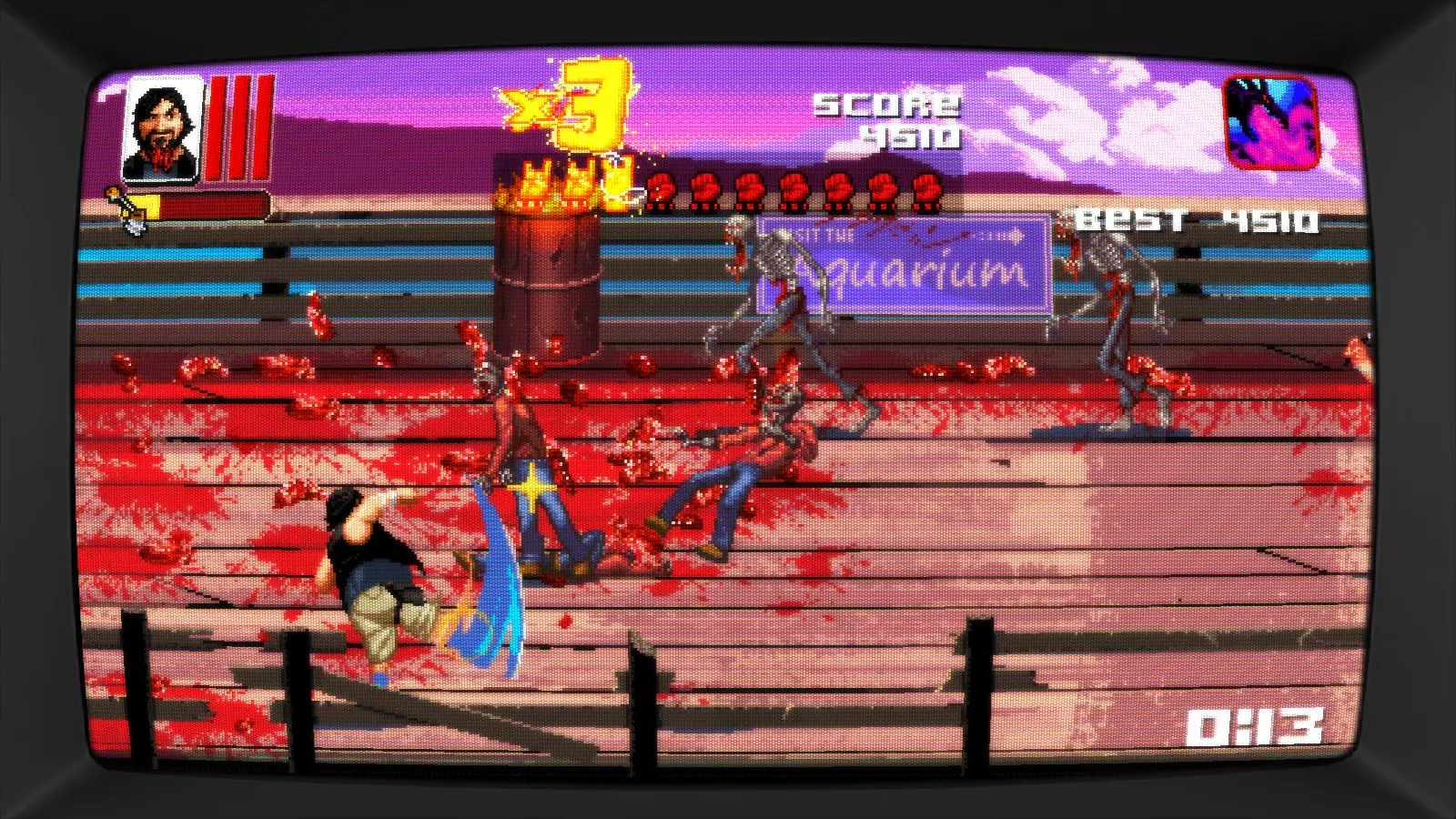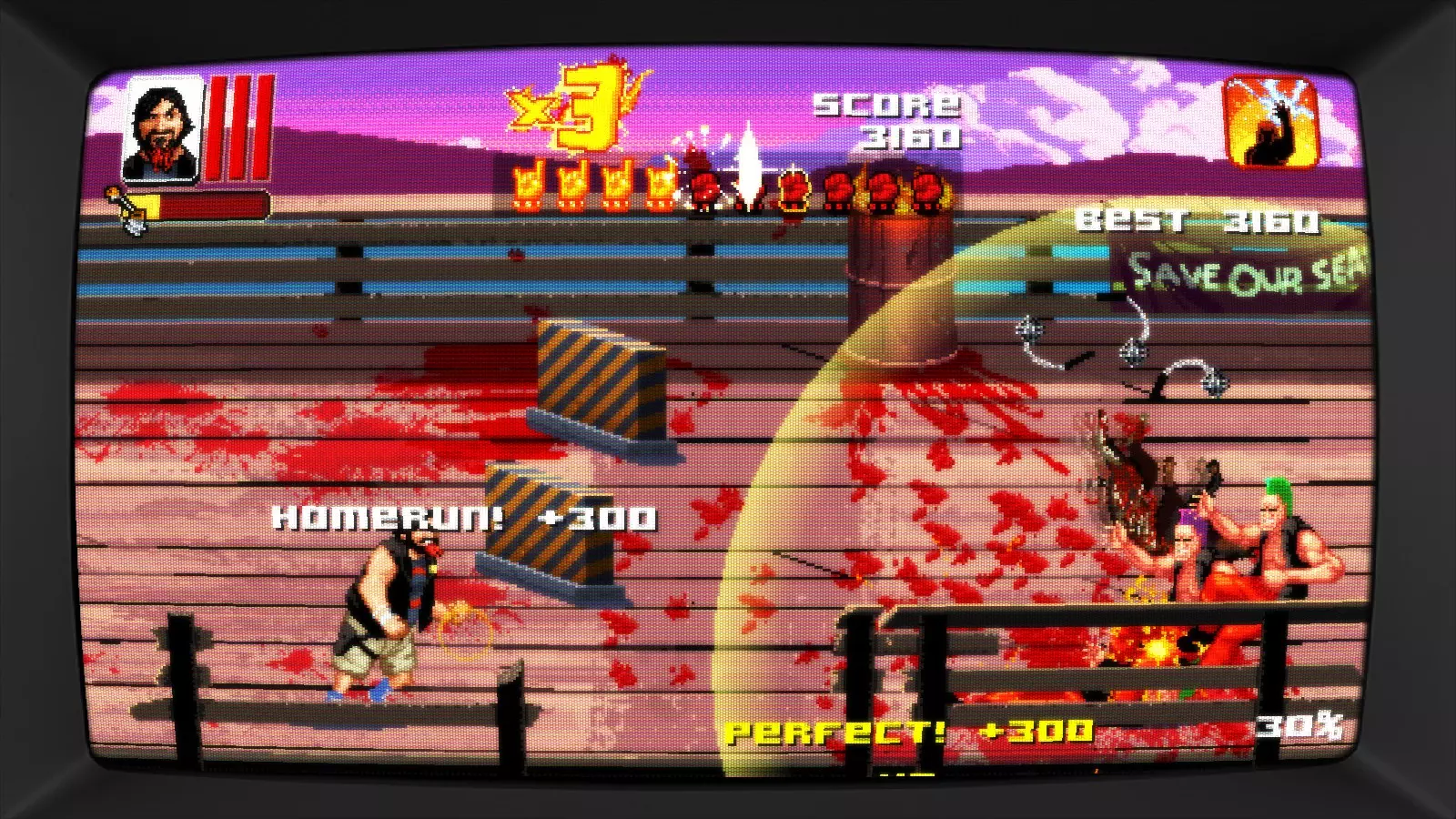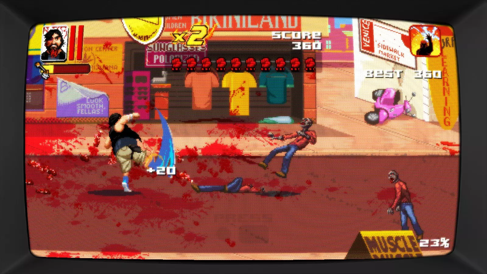 Mindez nem hangzik túl bonyolultan, de ennek ellenére nem száguldhatunk végig ész nélkül vagdalkozva a pályákon, mivel a szemből ránk rontó, vagy épp hátulról támadó rohadó rémségek és fegyveresek többsége egyedi taktikát igényel. Persze, van akit úgy üthetünk-vághatunk, ahogy kedvünk tartja, de olyanok is akadnak, akiket ha nem a megfelelő módon csépelünk, rögtön elvesztünk egyet a három életcsíkunkból, amiknek az elfogyása esetén kezdhetjük előröl az adott pályát. Egyeseknek felrobbannak, ha hozzájuk érünk, másoknál pedig figyelembe kell vennünk, hogy a testük rohad és tele van lyukakkal, így ha törzstájékon csapjuk meg őket, akkor amíg kihúzzuk a kezünk vagy a lábunk, belénk mélyesztik a fogukat. Mindez meglepően komplexé teszi az elsőre primitívnek tűnő programot, mert ha nem csak azzal foglalkozunk, hogy eljussunk a pálya elejéről a végére, hanem a pontszámunk is érdekel minket, akkor meg kell tanulnunk a saját javunkra fordítani a horda tagjainak gyengeségeit.