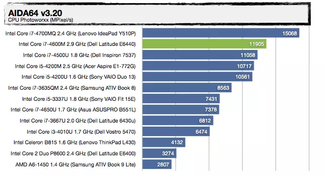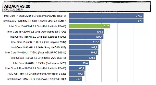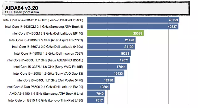 A nálunk járt kétmagos mobil processzorok közül egyértelműen a Core i7-4600M tekinthető a leggyorsabbnak és bár nem tudja megközelíteni négymagos társait, kellően gyorsnak dolgozik. Némi fricska lehet, ha összehasonlítjuk az U végződésű alacsony fogyasztású változatokkal, amelyek például a Hewlett-Packard aktuális EliteBookjaiban vannak.