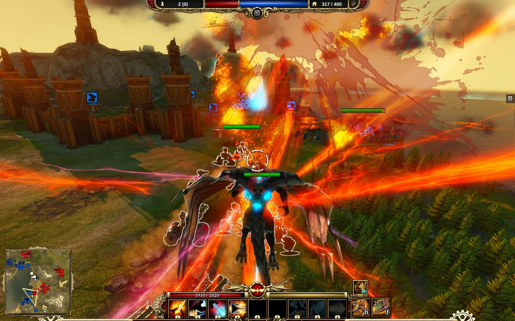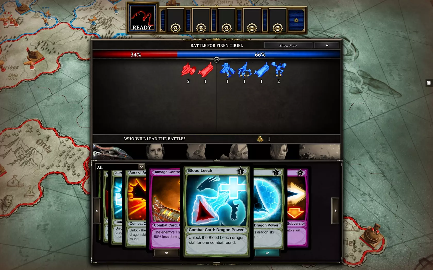 Persze nem csak erről szól a Dragon Commander, ugyanis a magját egy Total War-szerű rész alkotja. A léghajónkon elérhető egy világtérkép, ahol láthatjuk a birodalom provinciáit, ahol egységek és épületek tanyáznak. Ez a mi játszóterünk, ahol mozgathatjuk sakkbábuinkat, építkezhetünk, és felhasználhatjuk azokat a kártyákat, amelyek különféle bónuszokat nyújtanak az adott területnek, egységeknek, vagy sárkányunknak. A világtérképen körökre osztott módon zajlik az élet, de van egy valós idejű része is a játékmenetnek. Ha ugyanis harcra kerül a sor, betöltődik egy csatatér, ahol egymásnak eshet a két fél. Ezen a fronton kicsit hasonlít a játék a Dawn of War széria tagjaihoz, ugyanis a pályán vannak bizonyos területek, amiket el kell foglalnunk, ezek biztosítják az utánpótláshoz szükséges erőforrásokat. A hozzánk csatolt pontoknál tudunk építkezni, felhúzhatunk gyárakat, lövegtornyokat, és természetesen itt kell legyártanunk harci gépeinket is. A legjobb rész azonban az, hogy ha úgy tartja kedvünk, személyesen is részt vehetünk a harcokban. Ez azt jelenti, hogy sárkányformában megjelenünk a csatamezőn, amelyet a hátunkon lévő jetpacknek köszönhetően pillanatok alatt képesek vagyunk berepülni. Ezt ismételjük el még egyszer: egy hátirakétával száguldozó sárkány bőrébe bújhatunk bele. Hihetetlen élmény. Szánkból tüzet és savat köphetünk, de ha hajónkon kifejlesztettük a megfelelő képességeket, tucatnyi más támadó, illetve védekező varázslatot is használhatunk. Egymagunk azonban nem megyünk sokra a túlerővel szemben, így mindenképpen szükségünk van a többi egységünkre, akiket szárnyas gyíkunkkal támogatnunk kell.