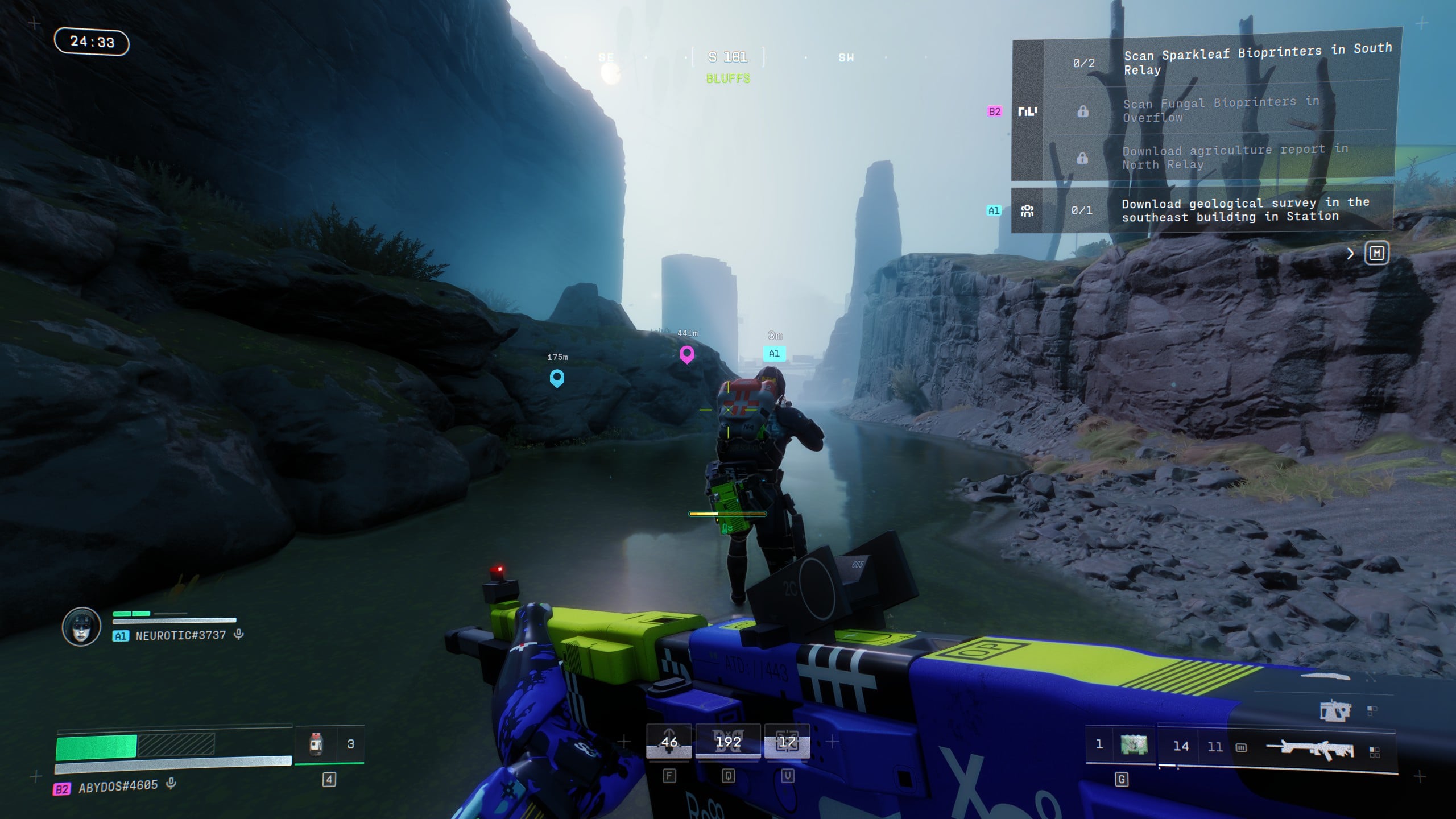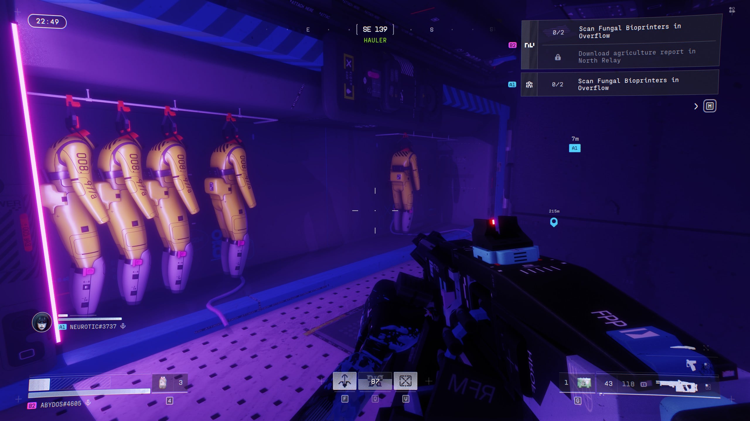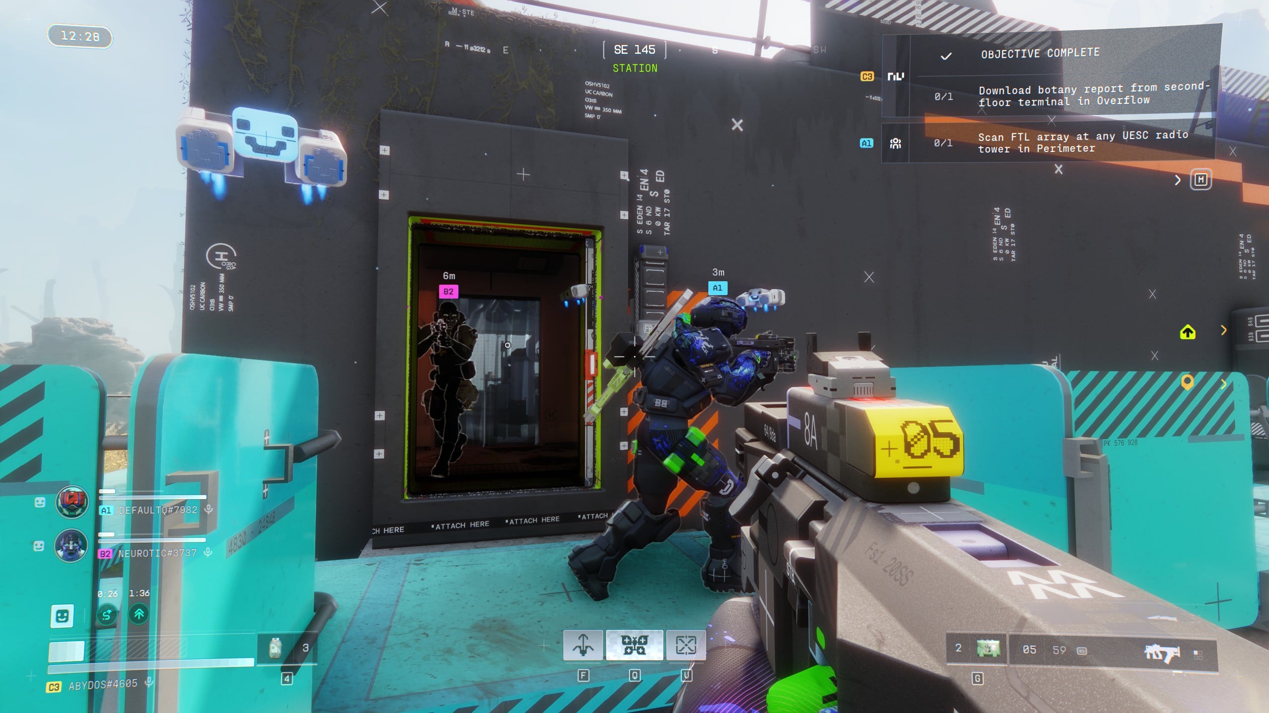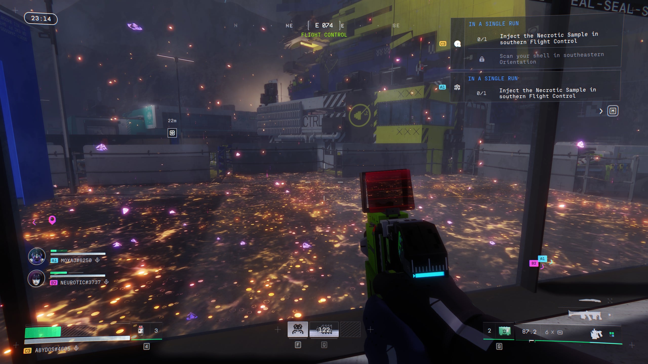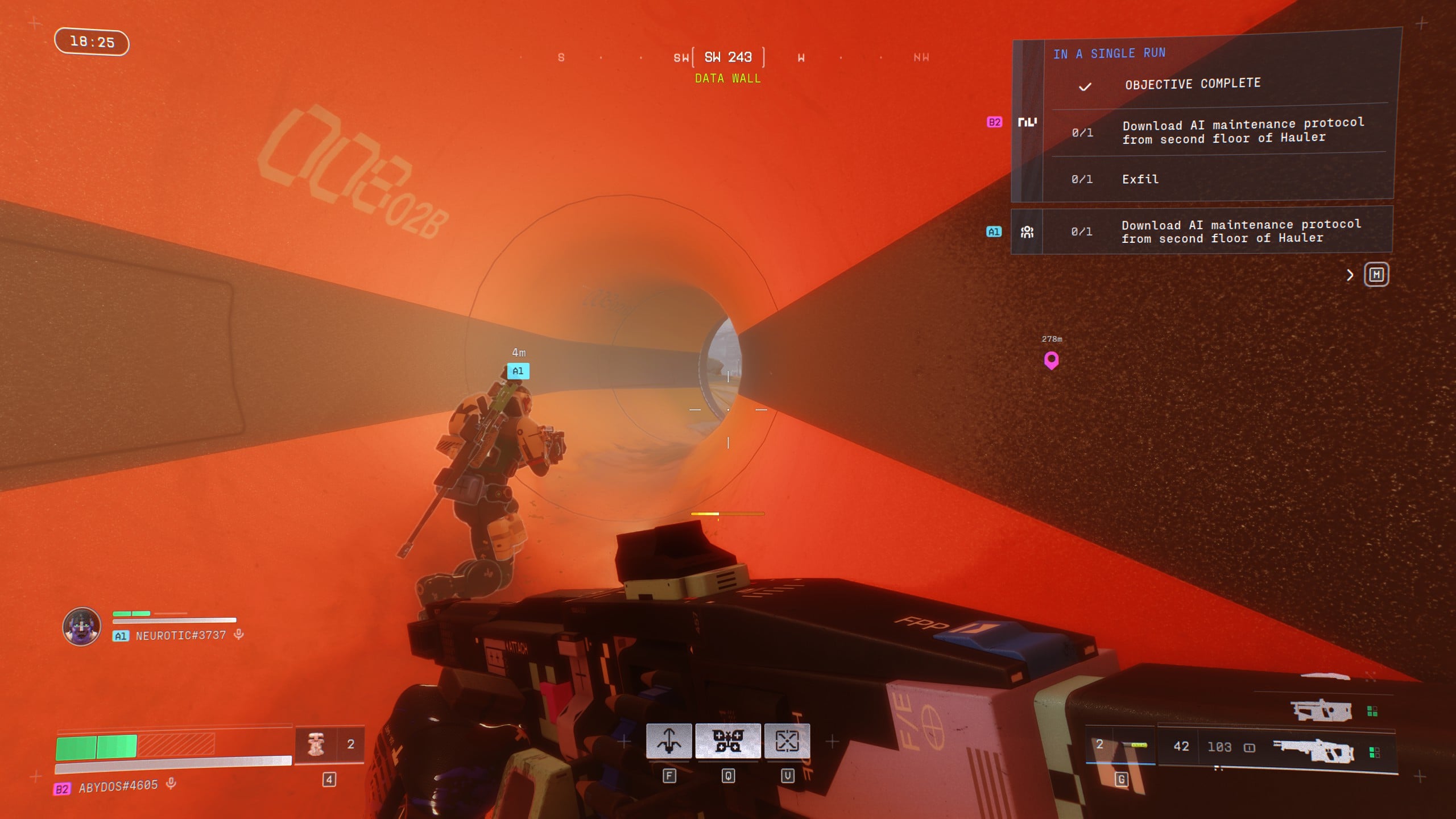 Ami talán újdonság lehet ebből a kis anekdotából, az a másik felszedése. A legtöbb extraction shooterben, ha földre kerülsz, akkor bizony vége a dalnak, kötelezően a következő raid küldetésre kell már készülnöd. A Marathon casual mivoltja azonban megengedi azt, hogy a földre került játékost újra talpra állítsuk, sőt, ez még akkor is lehetséges, ha másik teljesen meghal. A földre kerülésnek ugyanis két fázisa van. Amikor leterítenek, lehetőséged van még kúszni, ezzel a társaid segítségére várva elbújni. Ha azonban ezután kivégeznek vagy szétlőnek, akkor bizony „táskává” változol, a shelled többé nem mozdul meg, csak arra vagy jó, hogy a kipakoljanak belőled mindent. A Marathonban azonban, ha a csapattárs még él, akkor ha odamegy a táskához, akkor újra tudja materializálni az elesett bajtársakat is.