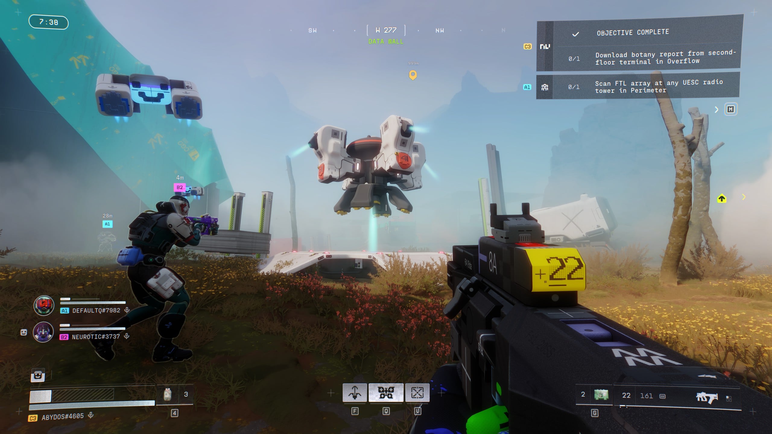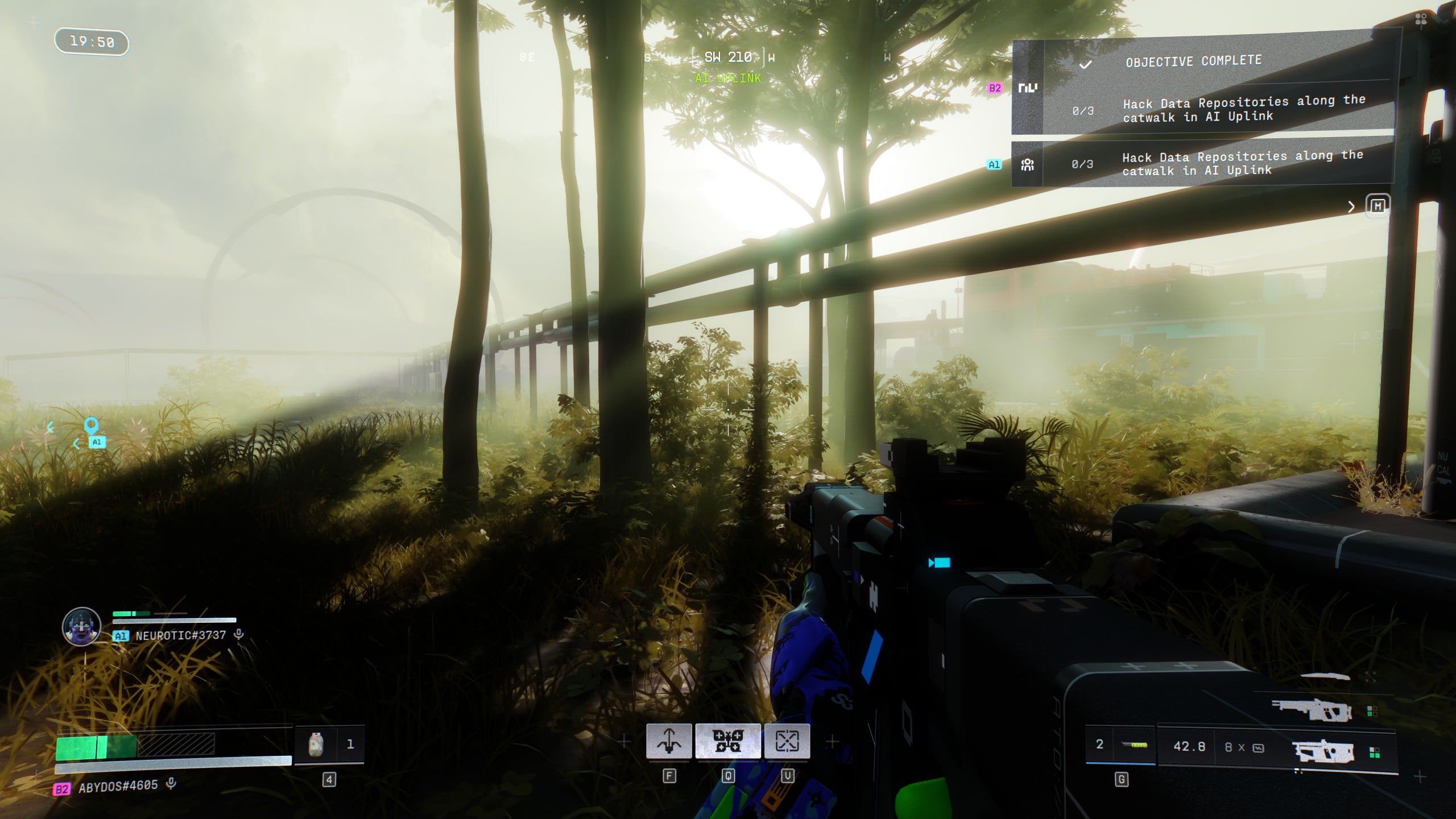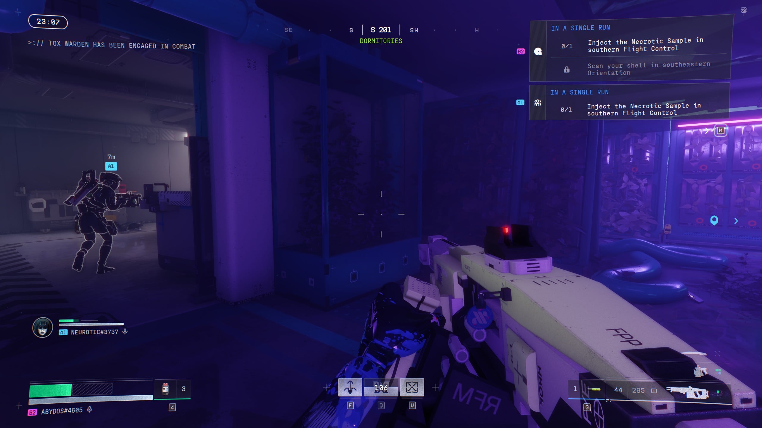 Az Escape from Tarkovhoz képest azonban a Marathon könnyedebb játéknak tűnik. Említettem, hogy a Server Slam nem tetszett. Bár a játék alapmechanikája és működése rendkívül hasonló, valószínű, hogy túlságosan is agresszíven játszottam, pont úgy, ahogyan egy Destiny, Halo féle játékot játszani szokás. Bemész, meglátsz valakit, és persze óvatos vagy, de lelövöd. A legtöbb extraction shooter játékban, mint ahogy említettem is, ez 1-2 jól irányzott lövés. A Marathon azonban inkább a Halo stílusú mechanikát viszi, tehát tunkolni kell az ellent, hogy végre megadja magát. Ráadásul egy-egy ellenfél ellenállóbb, így van olyan robot, amit sokáig kell győzködni, hogy végre térdre kényszerüljön.