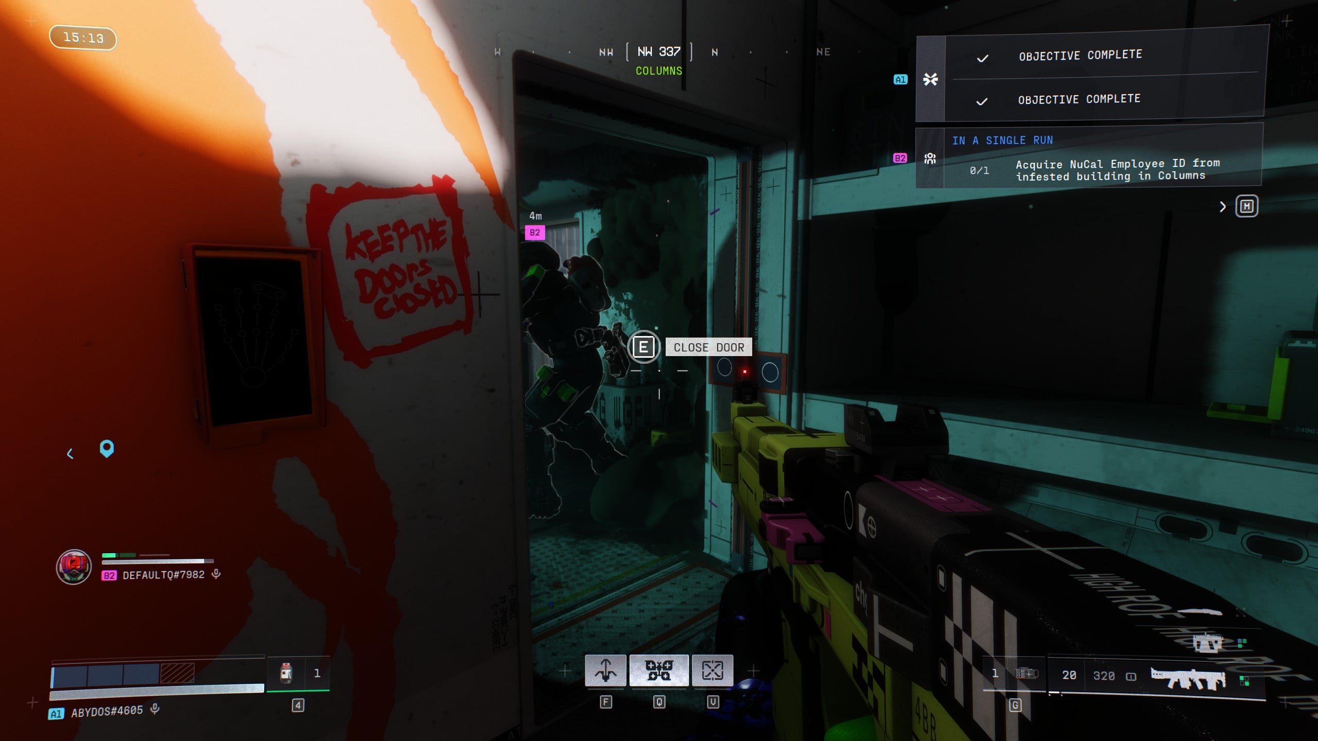 Én és DQ az ablakból kilőve próbáltunk kárt okozni a támadókban, DQ azonban kirohant, és földre is került. Ekkor fogtam, felkeltettem, és gyorsan leraktam egy aknát az ajtóba. Abban a pillanatban az ellen nyitotta is és rá is robbant a claymore. Drónnal próbáltak minket zaklatni, ám azt leszedtem, de valami jól irányzott robbanás miatt a földre kerültem. DQ felszedett, de előtte még a shelljének köszönhetően robbanó gránátokat lőtt az ajtó felé, amivel így még valakit kiszedett.