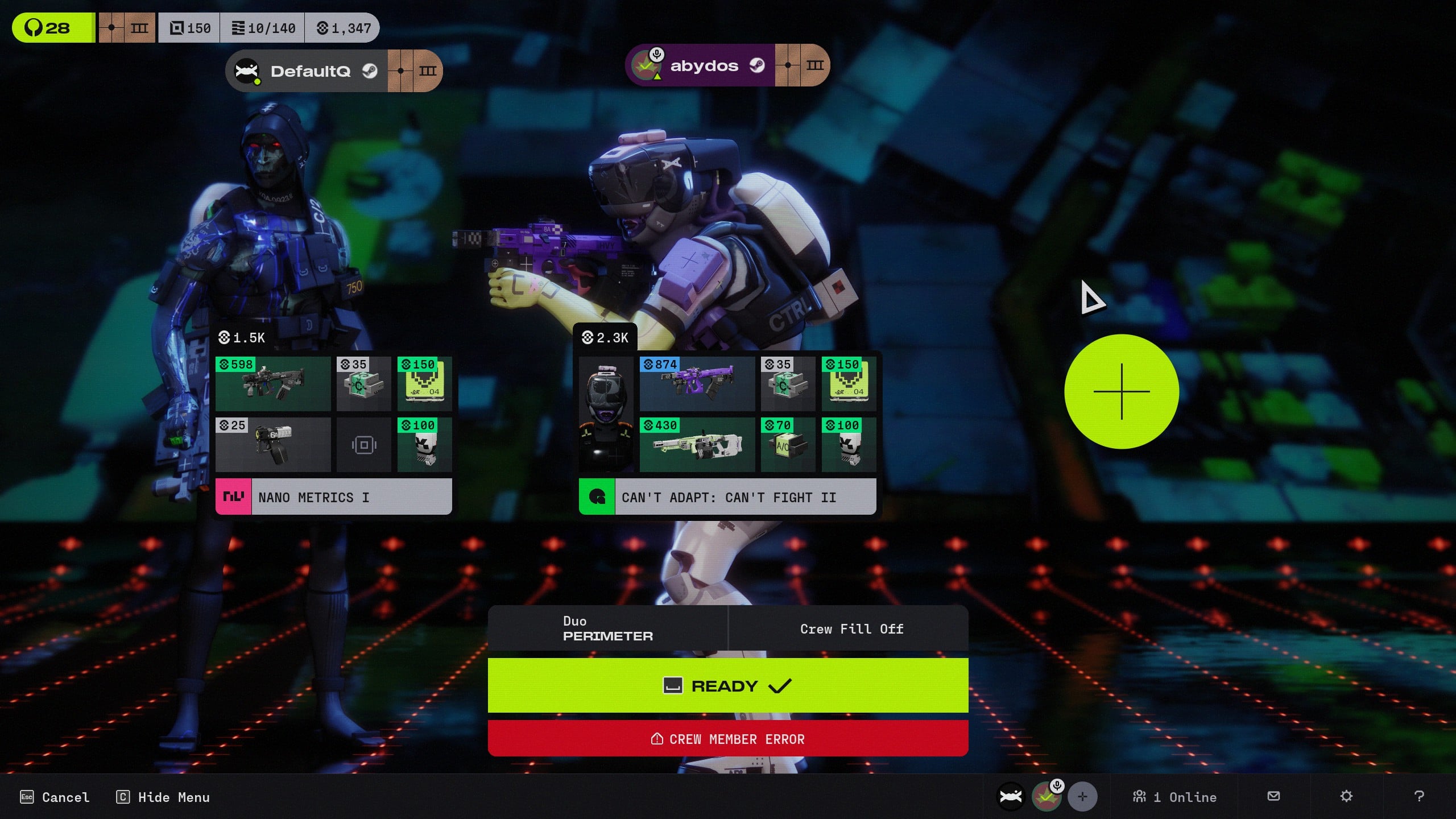 A játék alapból háromfős, de a visszajelzéseknek köszönhetően a cikk megjelenésére már került bele duo mód is. Ha valaki viszont szeretne csupaszon bemenni, erre is van lehetőség. Az egyik megoldás a Rook robot, ami csak egyedül játszható, csapatba nem tud rendeződni, cserébe alapvető felszereléssel megy le a pályára. A Rook közvetlenül nem fejleszthető, ám a különböző cégekkel közreműködve hajlandóak egyre jobban felszerelni a Rook shellt is számunkra, hogy több esélyünk legyen a túlélésre. Ha viszont csapatosan szeretnénk menni, de le vagyunk égve, akkor a runnerek számára elérhetőek az ingyenes szponzor csomagok, amik egy fegyvert, kevés lőszert és pár gyógyító csomagot tartalmaznak. Minimális lesz az esély a túlélésre egy ilyen run esetében, ám ha így is sikerül megölnünk egy másik runnert, akkor bizony megütjük a jackpotot, hiszen minden felszerelést ellophatunk a másiktól.