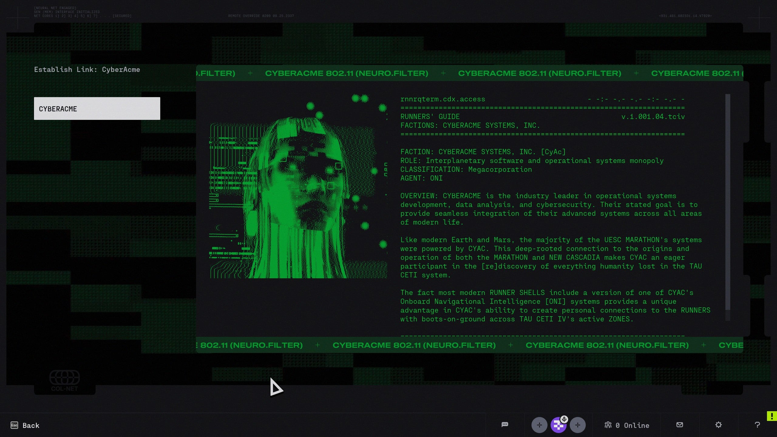 Ezek a runnerek különböző gigavállalatok megbízásait végzik el, és egy speciális technikával, géptestben érkeznek az élhetetlen Tau Ceti IV felszínére. A runnerek digitalizált tudattal rendelkeznek, amely „selyemhernyó” eljárással nyomtatott, úgynevezett shellekbe töltik át a tudatukat, és indulnak útjára portyázni. Ezek vagyunk mi a játékban.
