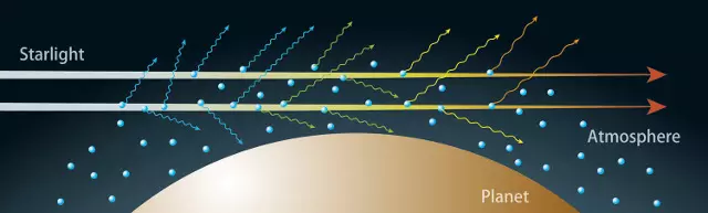 Az exobolygók tanulmányozásának egyik leggyakrabban alkalmazott metódusa az úgynevezett fedési módszer: a Földről nézve a csillagja előtt elhaladó bolygó ideiglenesen „kitakarja” a csillag fényének egy részét, keringése során periodikus változásokat indukálva a központi égitest fényében. Az átvonulás során azonban nemcsak a bolygó létezése, hanem annak légköre is tanulmányozható, mivel a bolygó atmoszférájának spektruma rárakódik a csillagéra, és a bolygó színképvonalainak Doppler-eltolódásából adódóan ezeket szét is lehet választani egymástól. A látható tartományban megfigyelt erős Rayleigh-szórás például hidrogénben gazdag légkörre utal. Ilyenkor a fény saját hullámhosszánál sokkal kisebb kiterjedésű nemfémes részecskéken szóródik, amelyek nem változtatják meg jelentősen annak hullámhosszát, viszont jóval nagyobb mértékű szóródást váltanak ki a rövidebb hullámhosszakon, vagyis a kék tartományban. Ennek eredményeként a nagyobb hullámhosszú fénysugarak, vagyis a vörös felé eső részek viszonylag háborítatlanul vészelik át a légkörön átvezető utat, a tartomány kék része azonban erősen szóródik.