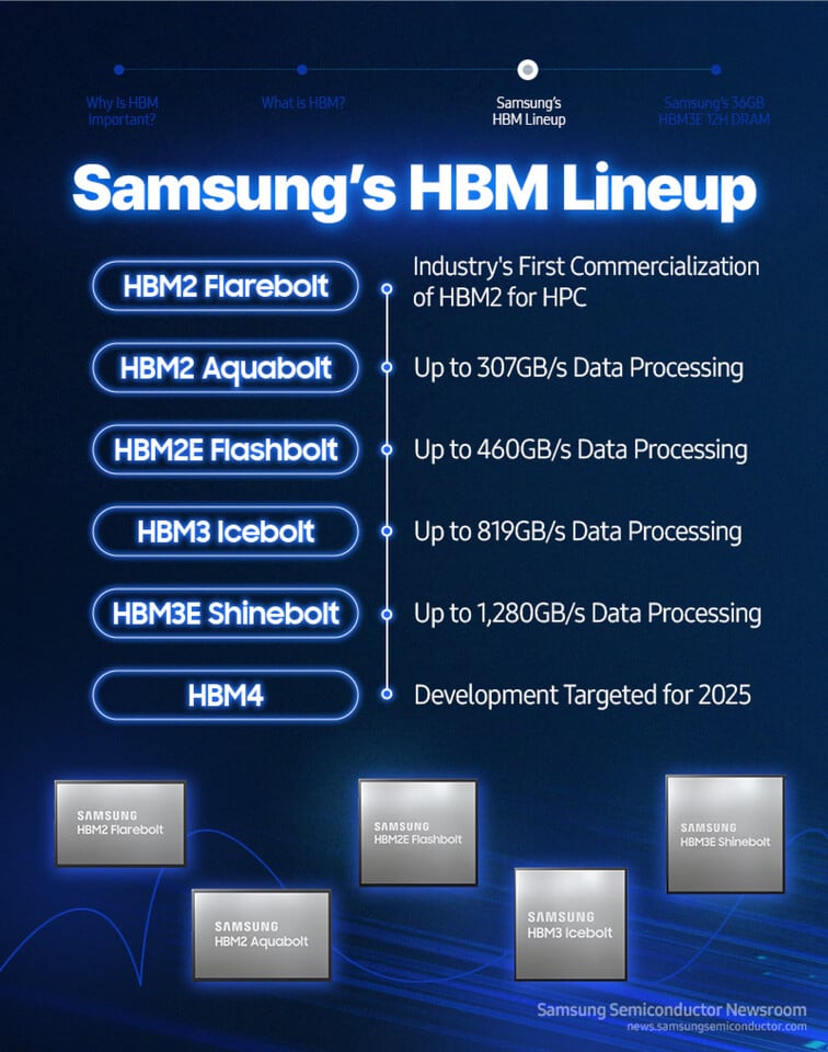 A hatodik generációs HBM termékcsalád, ami HBM4 szabvány köré épülő memóriachip-szendvicseket tartalmaz majd, várhatóan a Samsung 4 nm-es osztályú gyártástechnológiájával készített memórialapkákat tartalmazhat, vagyis az SF4 sorozatból választanak node-ot. Az extra logikai lapkával ellátott HBM4-es memóriachip-szendvicsek várhatóan a következő generációs, ultra-magas teljesítményt nyújtó AI gyorsítók fedélzetén kaphatnak majd helyet, de hogy pontosan melyek lesznek ezek, azt még nem részletezték.