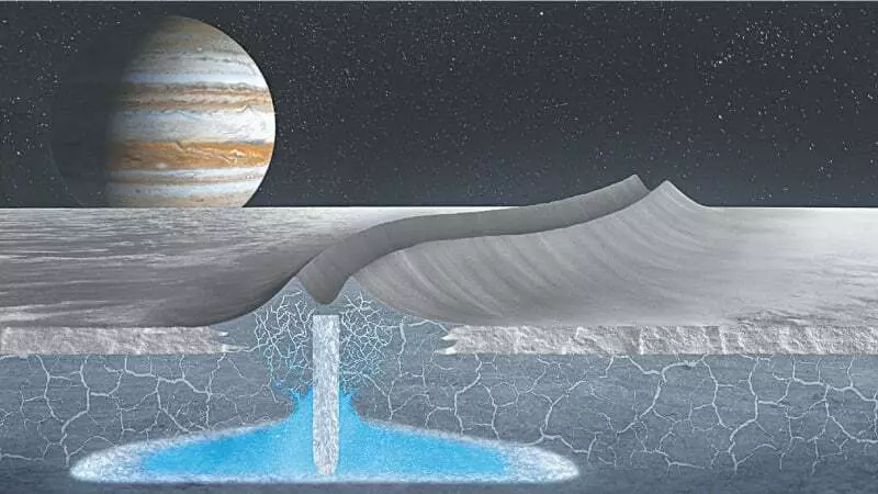 A nátrium-klorid felszínen való megjelenése egyúttal azt is jelzi, hogy a Jupiter gravitációja a földi lemeztektonikához hasonló folyamatokat működtethet az Európé jégkérgében. Vagyis a jég mély repedésekkel tarkított, amelyeken keresztül a mélyből víz és különböző ebbe oldott anyagok szivárognak a jeges hold felszínére. És hogy van minek szivárognia, az egyúttal azt is jelzi, hogy a mélyben tetemes mennyiségű folyékony víz van, amit szintén a Jupiter árapályhatása tart kellően melegen. Ez pedig annak az esélyét is megteremti, hogy esetlegesen élet legyen a jég alatt, hiszen a víz és az energia is adott ehhez.
