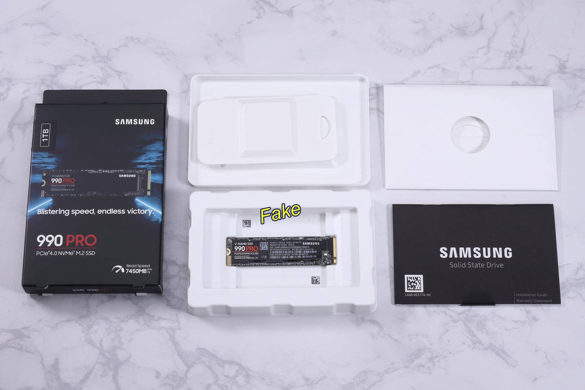 Ezt a már amúgy is kedvezőtlen helyzetet tovább rontja, hogy a csalók is próbálnak érvényesülni, próbálnak némi extra profitra szert tenni, ennek érdekében pedig egyre profibb hamisítványok formájában kínálják portékáikat, jelen esetben egy hamisított Samsung 990 Pro SSD kártyát, amire az Akiba PC Hotline csapata csapott le. A csomagolás, az SSD kártya, illetve a mellékelt dokumentáció is professzionális szintű, igaz, itt-ott azért még szerencsére vannak benne hibák, amelyek azért felkelthetik a gyanút. Átlagfelhasználói szinten az efféle termékek már tökéletesen alkalmasak a megtévesztésre, de szerencsére így is van néhány támpont, amelyek alapján könnyen lebukhat a hamisítvány.