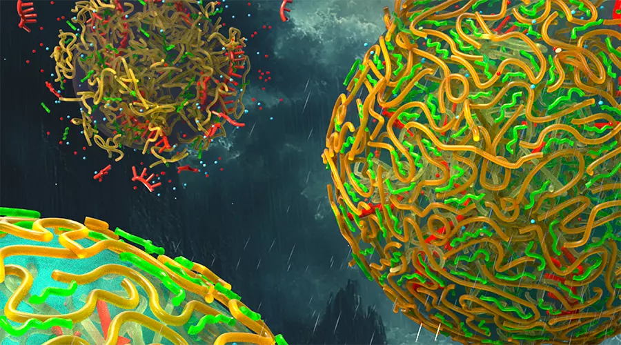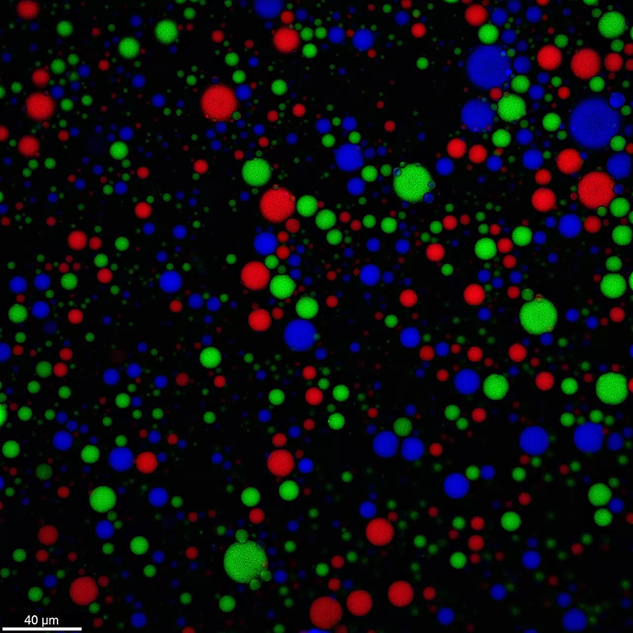 Azonban ezekben a kísérletekben az RNS-cseppek nem voltak képesek különállóak maradni, ahogyan a sejtek a teszik. Az RNS-szálak gyorsan átvándoroltak egyik cseppből a másikba, és idővel a cseppek összeolvadtak, mint az olajcseppek, amelyek a víz tetején filmréteggé állnak össze.