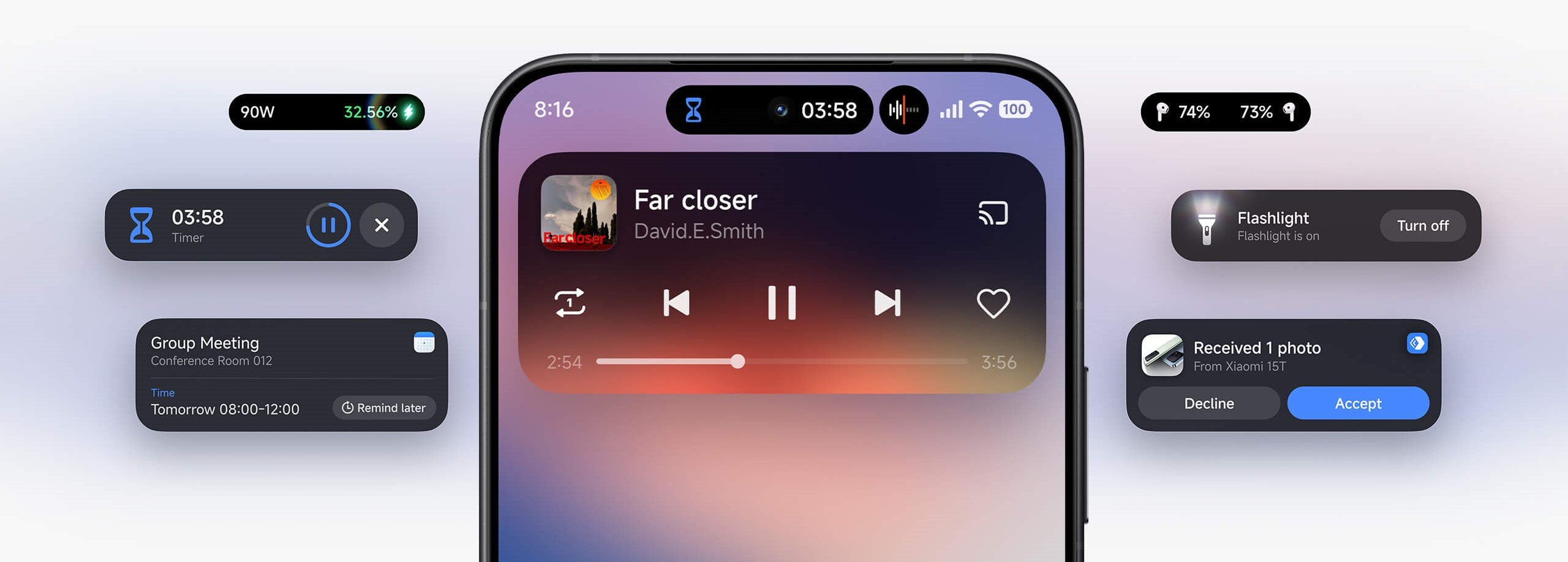 A HyperOS 3 telepítését követően a felhasználók az eddiginél több testreszabási lehetőséget kapnak majd, a Xiaomi is dolgozott ezen és az Android 16 ilyen jellegű újításait is átvette a vállalat. Főleg a lezárt képernyőnél lehet látványos a változás. Bevezetésre kerül a HyperIsland, ami egy lebegő értesítési felület az előlapi kamera körül, és sok hasznos adattal tud szolgálni élőben a felhasználóknak, miközben a képernyőt nem foglalja el teljesen az adott alkalmazás. Az ikonok és a widgetek is frissülnek, új tematikához igazodó grafikát kapnak.