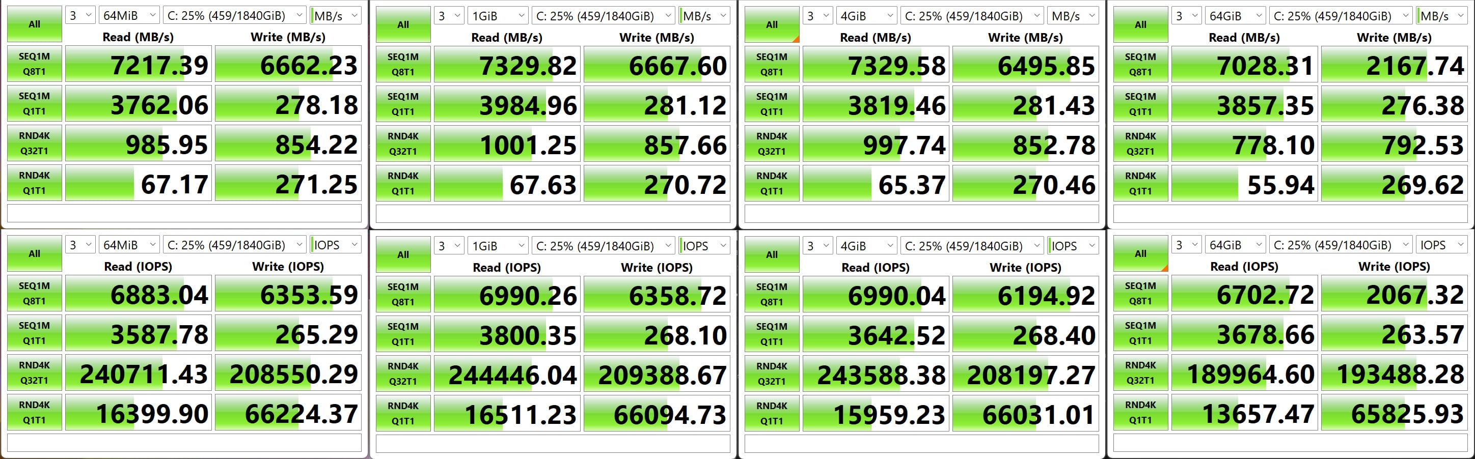 Az SSD olvasási értékei másodpercenként átlépik a 7000 MB-ot, tehát rendszerműveletek és játék alatt is kiválóan teljesít. Az írási értékeknél azonban throttling lépett fel, ami a hűtőborda hiányának tudható be. A 6000 MB fölötti írási teljesítmény 2000 MB körülire zuhant vissza, ami elég drasztikus visszaesés. A gyártó azóta jelezte, hogy a jövőben a nagyobb teljesítményű meghajtóin gondoskodni fog megfelelő hűtési megoldásról.