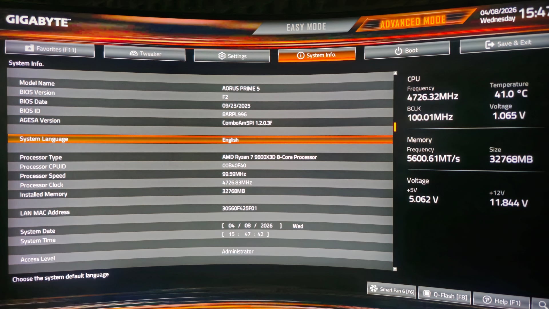 Az UEFI amúgy először meglehetősen alacsony felbontásban tárult elém, ám miután az előre telepített Windows 11 rendszert beállítottam, illetve néhány kötelező frissítést követően újra beléptem a BIOS-ba, azt vettem észre, hogy nagyobbra váltott a felbontás és mintha az egér is simábban működött volna. Talán csak optikai csalódás, de azért érdekesnek találtam.
