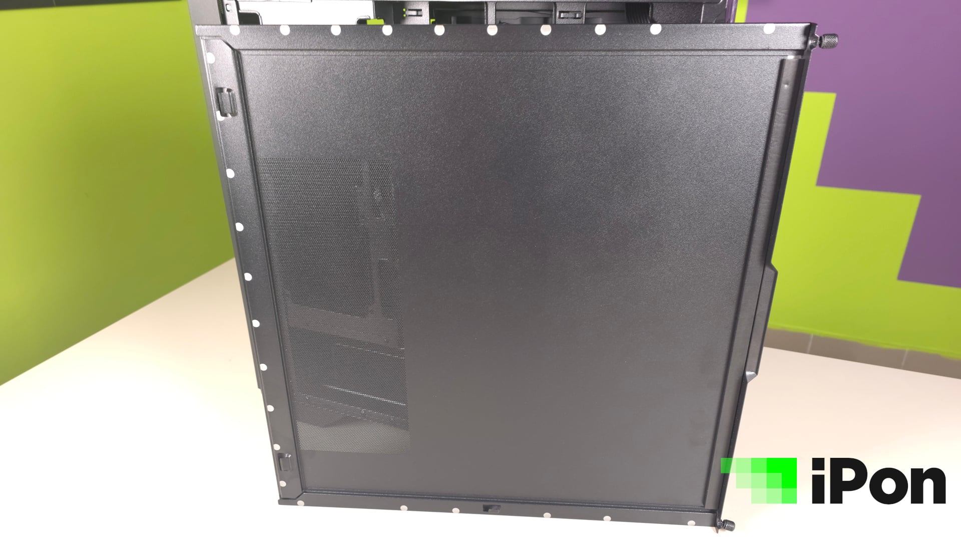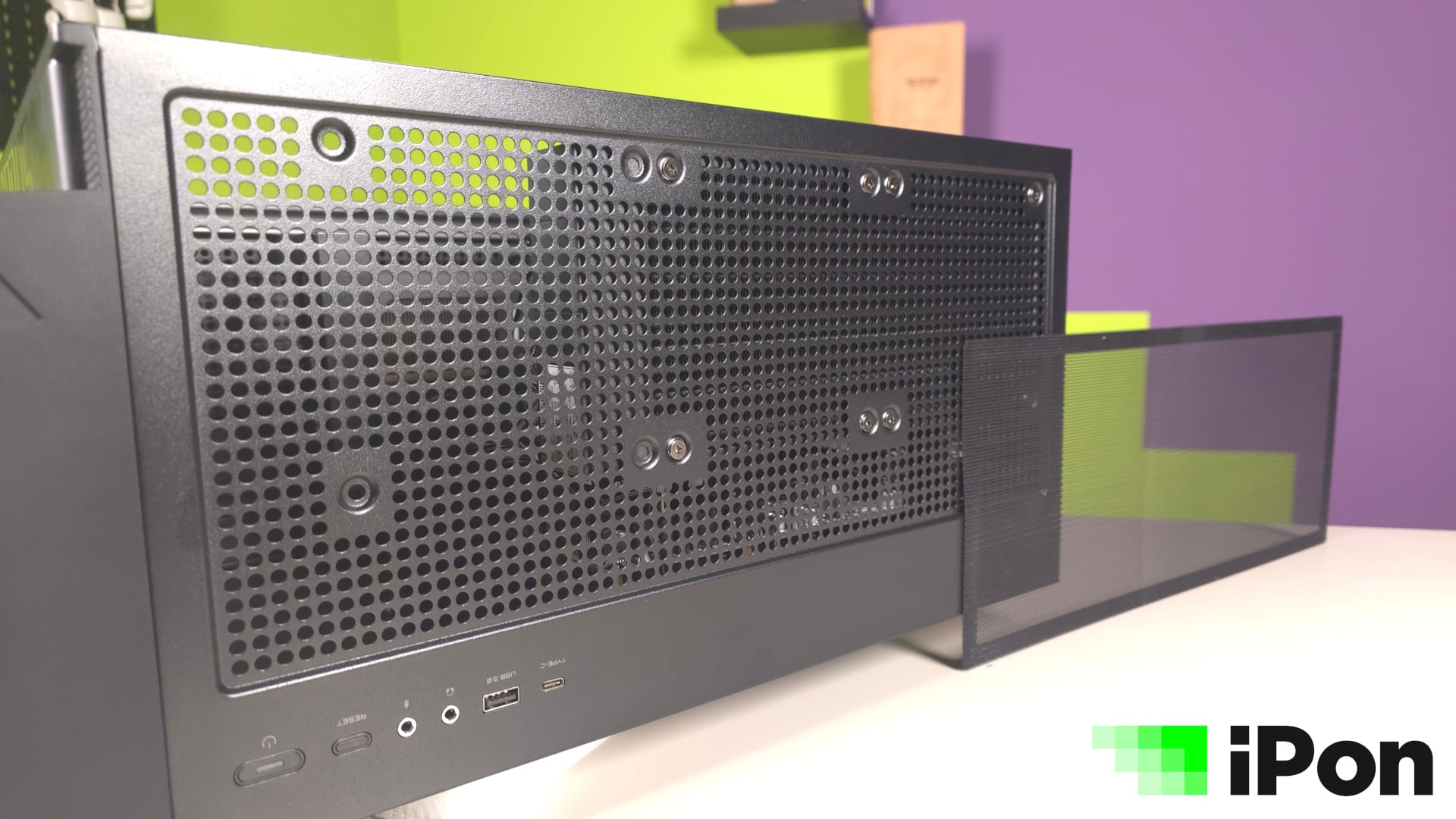 A jó hűtéshez azonban szellőztetni is kell, melyet a gyártó minden oldalon mesh kialakítással oldott meg, tehát lényegében szellőzőrácsokat kapunk. Sajnos az előlap esetében az egész, masszív és vaskos panelt le kell tépni ahhoz, hogy ki lehessen takarítani, de a ventik is csak így kerülhetnek a helyükre.