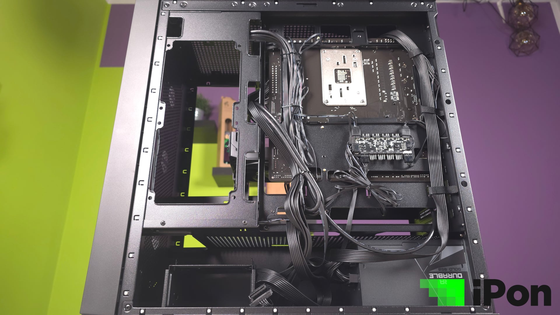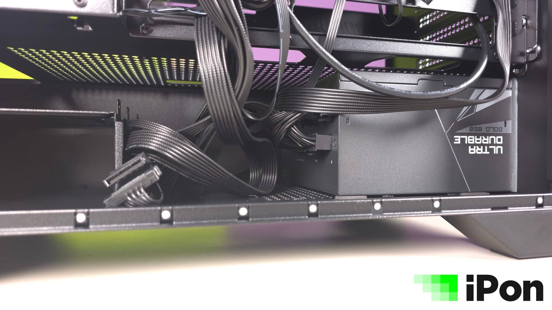 Az elszeparált alsó szektorban a tápegység viszonylag tágas helyen fekhet, még úgy is, hogy el kellett férnie a HDD/SSD keretnek is. Napjaink PSU-i zömében még nagyobb kapacitás esetén sem olyan hosszúak, hogy ezzel probléma legyen, de végszükség esetén a keret két csavar eltávolítása után kiszedhető.