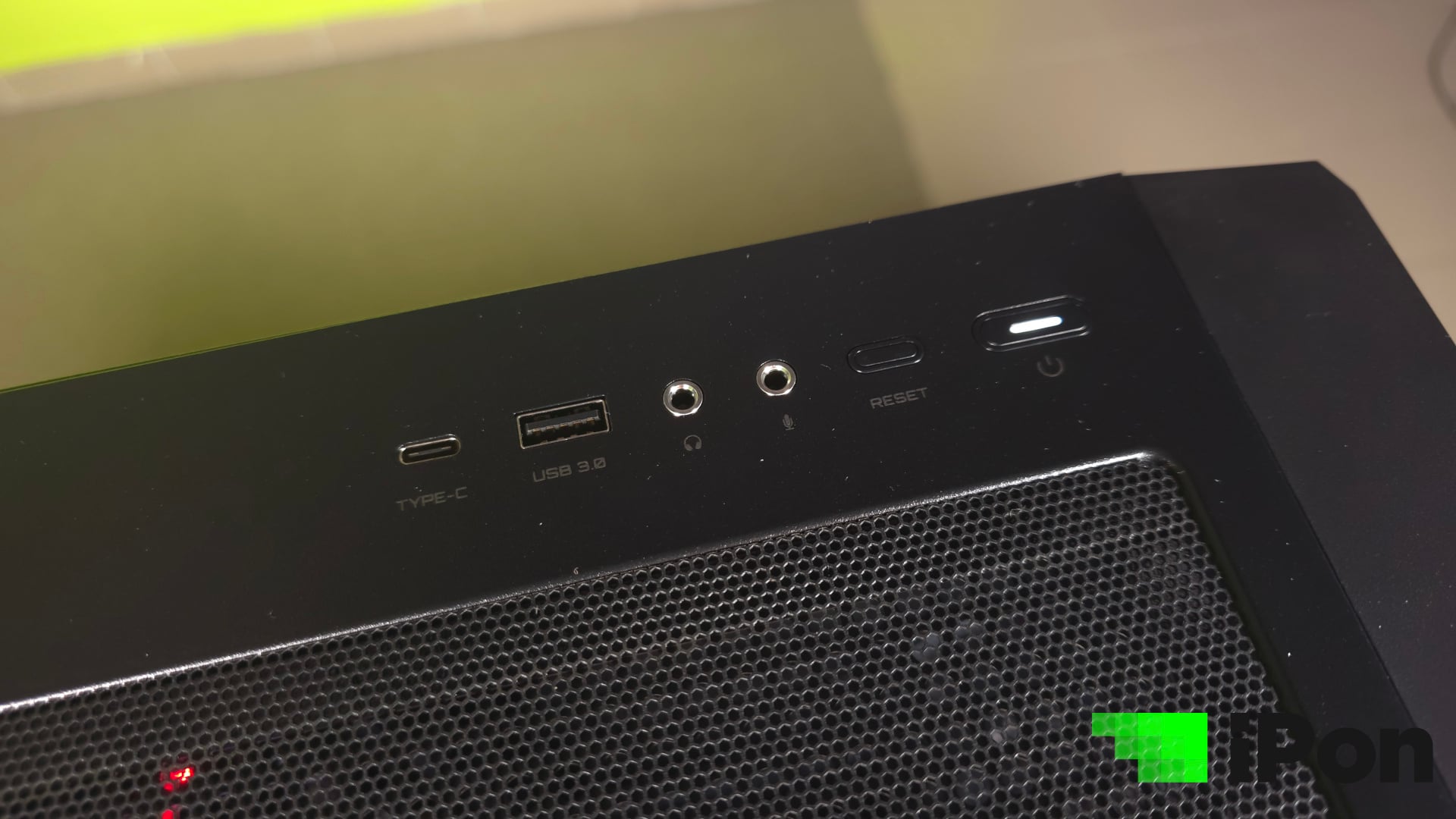 A ház felső lapjába épített I/O portok tekintetében a szokásos minimumra szorítkoztak, ott egy Type-C és egy USB-A 3.0 teljesít szolgálatot, illetve egy-egy különálló 3.5 mm-es jack a mikrofon és a fejhallgató számára. Ezek mellett a reset és a power gombokat találjuk, utóbbiban egy beépített visszajelző LED-del.