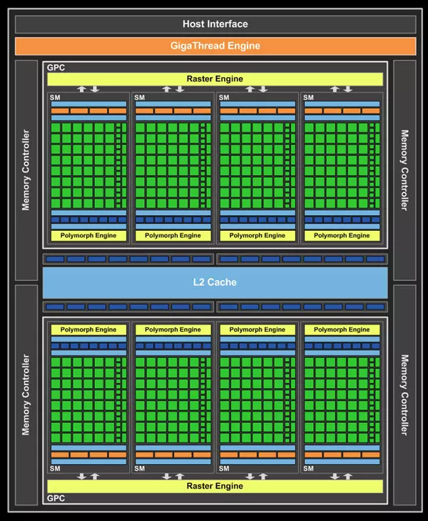 A GeForce GTX 560 Ti az Nvidia 40 nm-es csíkszélességgel készülő GF114-es grafikus processzora köré épül, ami hasonló kapcsolatban áll GF104-es elődjével, mint a GF110 a GF100-as típusú grafikus processzorral. Míg a GeForce GTX 460-as modellnél alkalmazott GF104-es GPU esetében nyolcból csak hét SM tömb volt engedélyezve, addig a GF114-es alapokon nyugvó GeForce GTX 560 Ti esetében a nyolc SM tömbből már mind a nyolc használható, ami számos előnnyel jár. A GeForce GTX 560 Ti 384 CUDA maggal, 64 textúrázóval 8 Polymorph motorral, 32 ROP egységgel és 512 KB-nyi másodszintű gyorsítótárral érkezik és természetesen a 4 x 64-bites memóriavezérlő is a kínálat részét képezi. Ebből következően a GeForce GTX 560 Ti azonos órajelen mintegy 14%-kal nagyobb teljesítményt kínál, mint elődje.