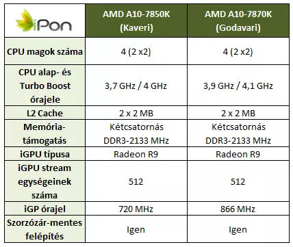 Hogy mit kínál papíron az A10-7850K fölé érkező A10-7870K? Az alábbi táblázat elárulja.