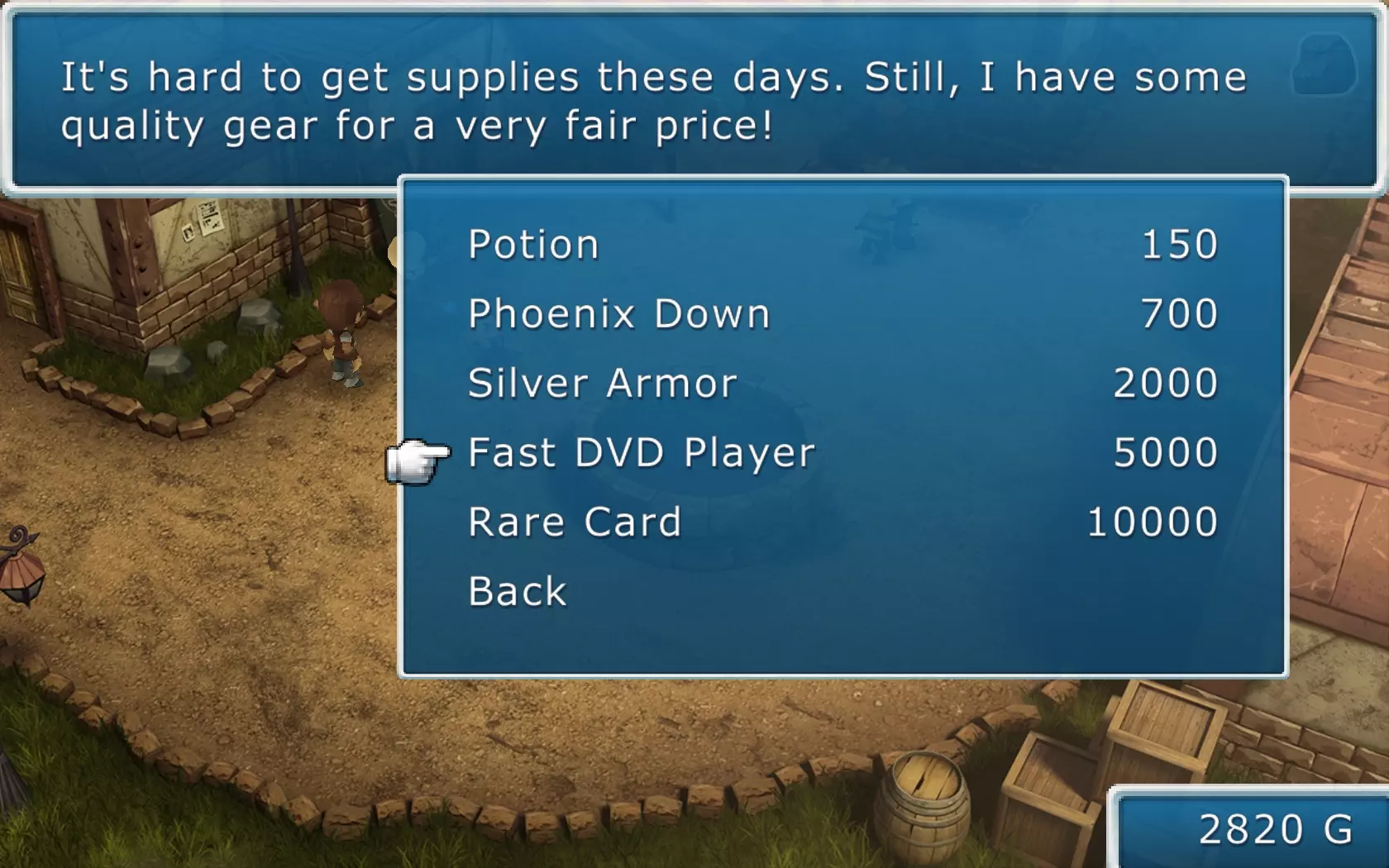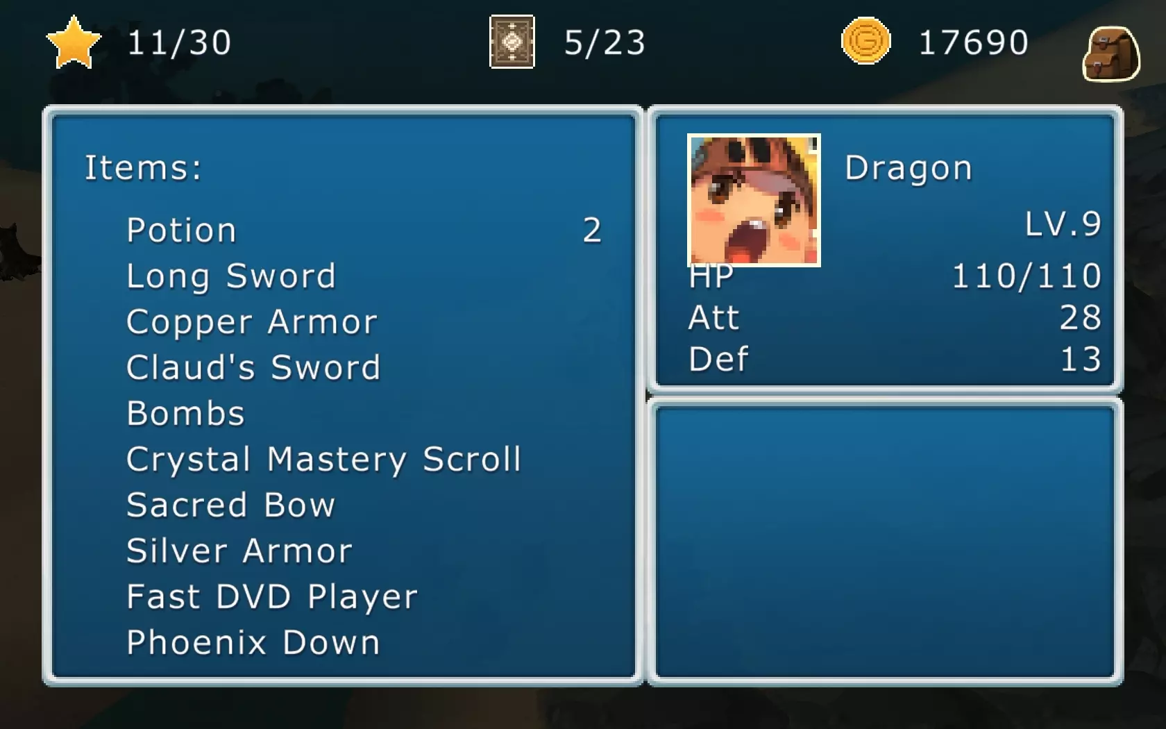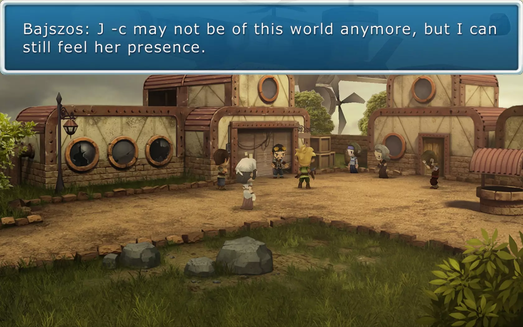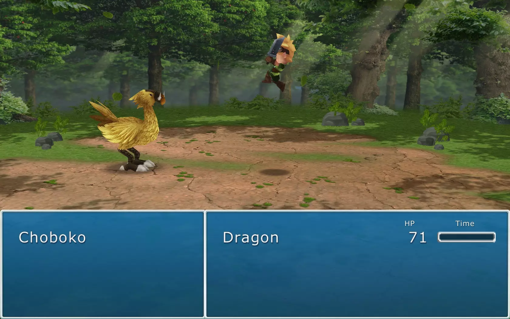 Az elgondolás nagyon ötletes, ám sajnos a játék végigjátszása után mégis keserű szájízzel álltunk fel a számítógép mellől. Ugyanis a játékmenet minden eleme megrekedt a legalapvetőbb szinten, miközben ebből többet is ki lehetett volna hozni. Kezdjük a sztorinál, ami egy egyszerű világmegmentős történetet. Az általunk irányított karakternek be kell járnia az amúgy meglehetősen kicsiny világot, megszereznie két-három tárgyat, majd összecsapnia egy főellenséggel. Ennyi. Kalandozásaink során mindössze két apró falucskába térhetünk csak be, és alig pár NPC-vel fogunk találkozni, de ők sem mondanak semmi érdekfeszítőt. A csapatunkba felvehető társból is csak egy akad, akinek pedig nincs komoly háttértörténete. Ráadásul az egész sztori meglehetősen rövid, az egészet alig 3-4 óra alatt végig lehet vinni. Az egyetlen pozitívuma a cselekménynek az, hogy pofátlanul, ám humoros módon lop a Final Fantasy sorozatból, sőt, időnként még animékből is (elég ha annyit mondunk, hogy látni fogunk Ka-me-ha-me támadást). Aki játszott a Square Enix legendás JRPG-ivel, biztos fel fogja ismerni ezeket az utalásokat (még kártyajáték is van).