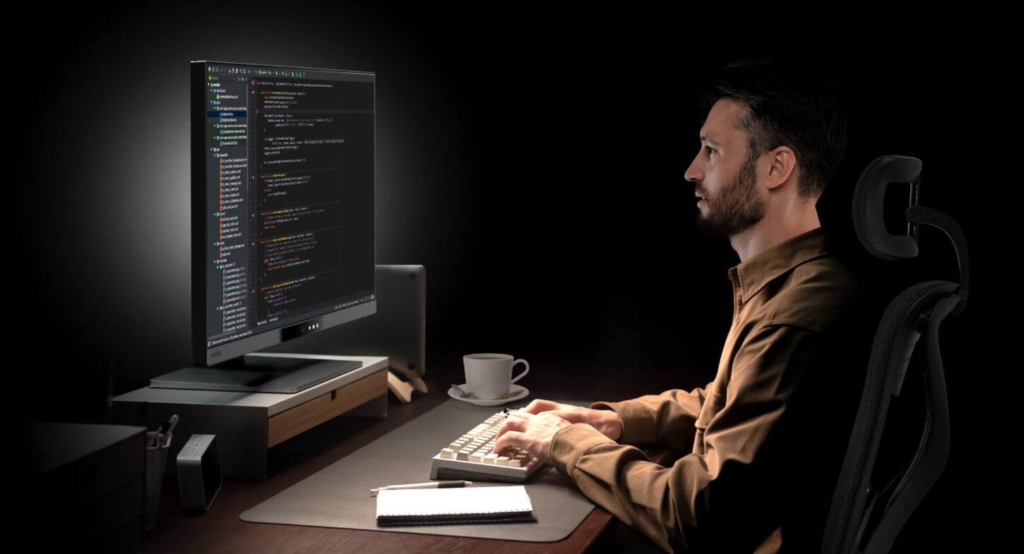 A Dark Theme a sötét módba használt fejlesztői környezetekhez passzol, míg a Light Theme a normál, világos tartalmak megtekintését segíti – mindkettő igyekszik a szövegek olvashatóságának javítására és az élesség növelésére, valamint a szemek terhelésének csökkentésében is. Van még egy harmadik mód, a Paper Color Mode, ami papírszerű vizuális komfortot kínál, mintha csak egy papírlapot néznénk – ez főként a már elfáradt szemek kímélését segíti, ha még mindig muszáj folytatni a munkát. Az éjszakai programozást egy Night Hours Protection nevű funkció is segíti, amivel akár 2 nit fényerősség mellett is használható a monitor, ezzel még inkább kímélve a már amúgy is fáradt szemeinket.