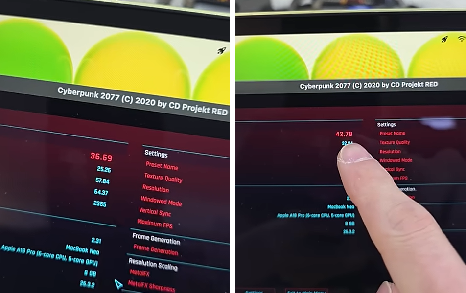 A tesztek szerint CyberPunk 2077 alatt ez az apró kis beavatkozás azt eredményezte, hogy a korábbi 2 GHz körüli órajel 3 GHz fölé emelkedett a P Cluster, azaz a teljesítményre hangolt processzormagok esetében, a teljesítmény pedig 36,59 FPS-ről egészen 42,78 FPS-re nőtt. Egyéb felhasználói tesztek szerint a normál állapothoz képest nagyjából 10-20% közötti teljesítménynövekedést lehet elérni az egyes alkalmazások alatt a jobb hűtés révén, ami azért jelentős gyorsulást eredményez.
