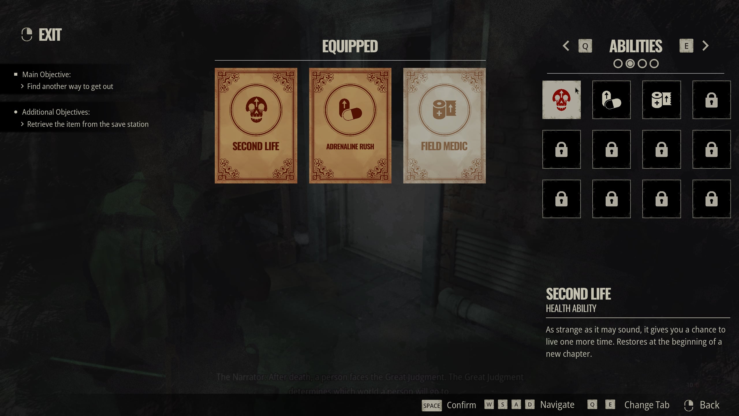 A játék nem az olcsó jumpscare-ekre épít, hanem inkább pszichológiai nyomást gyakorol ránk és a memóriánkat is használnunk kell, ahogy fejben is feltérképezzük a kórházat. A loop mechanika miatt érdekes helyzetben vagyunk, ugyanis „halhatatlannak” számítunk, legalábbis itt ne számítsunk YOU ARE DEAD képernyőkre, az időhurok ugyanis ezt is megoldja. Ha valami nem sikerülne elsőre, akkor a játék visszadob az előző mentésig és újrapróbáljuk. Azonban olyan helyzetbe is belefutottam, ahol az engem letámadó 2 zombi, miután sikeresen megölt, a következő próbálkozásra eltűnt és az egészre csak a saját hullám emlékeztetett. RPG elemként képességeket is találhatunk a pályákon és viccesnek hangzik, de a loop mellett pl. újjáéledést is betárazhatunk itt, ami megint az időmechanikával való játszadozást erősíti.