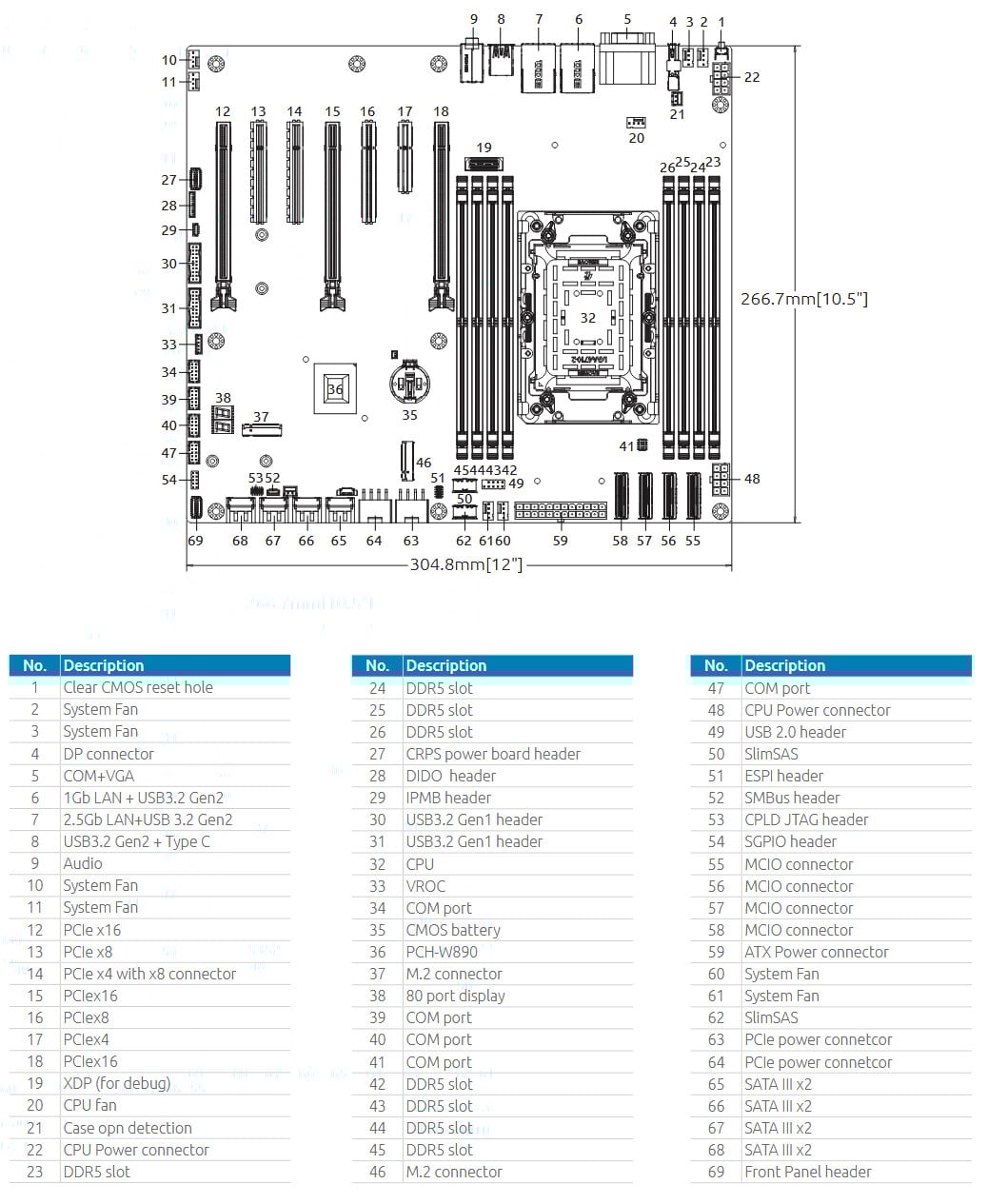A W890-es platform egy felsőkategóriás munkaállomás-alapnak minősül, amelyben akár a 336 MB-nyi megosztott harmadszintű gyorsítótárral, 86 processzormaggal és 4,8 GHz-es maximális boost órajellel büszkélkedő Granite Rapids-WS processzor is helyet kaphat. A Socket E2-es processzorfoglalat várhatóan 350 W-os TDP keretig bezárólag fogadja majd a munkaállomás processzorokat.