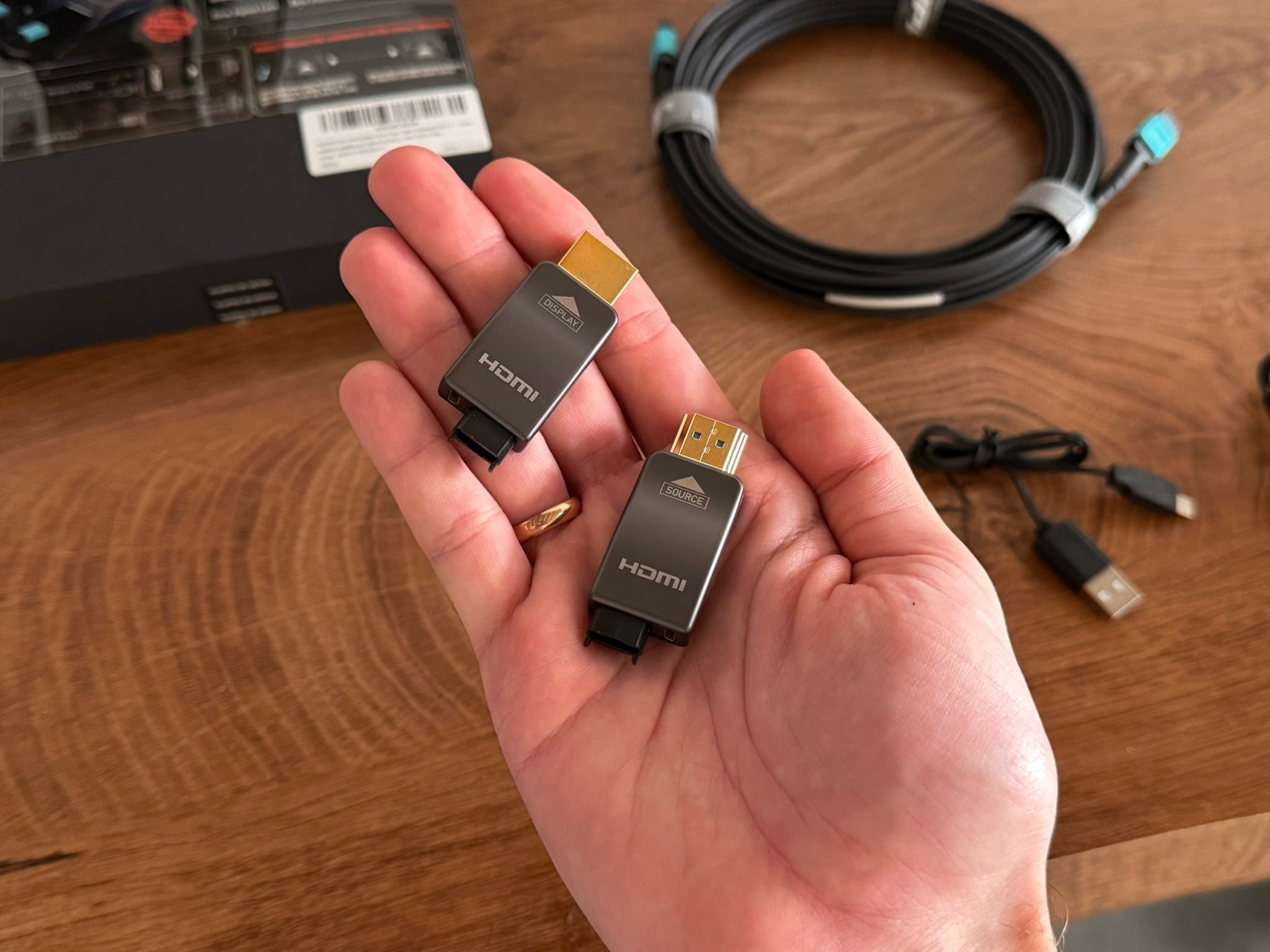 A HDMI porttal szerelt eszközök esetében olykor-olykor szükség lehet néhány méternél nagyobb távolság áthidalására is, amiben a klasszikus, réz alapú kábelek jellemzően nem tudnak segíteni. Ilyenkor jöhet jól az a speciális fejlesztés, amire egy tartalomgyártó, Ben Geskin hívta fel a figyelmet a minap: egy aktív HDMI adapterekkel ellátott megoldásról van szó, ahol az adapterek között optikai kábel teremt kapcsolatot.