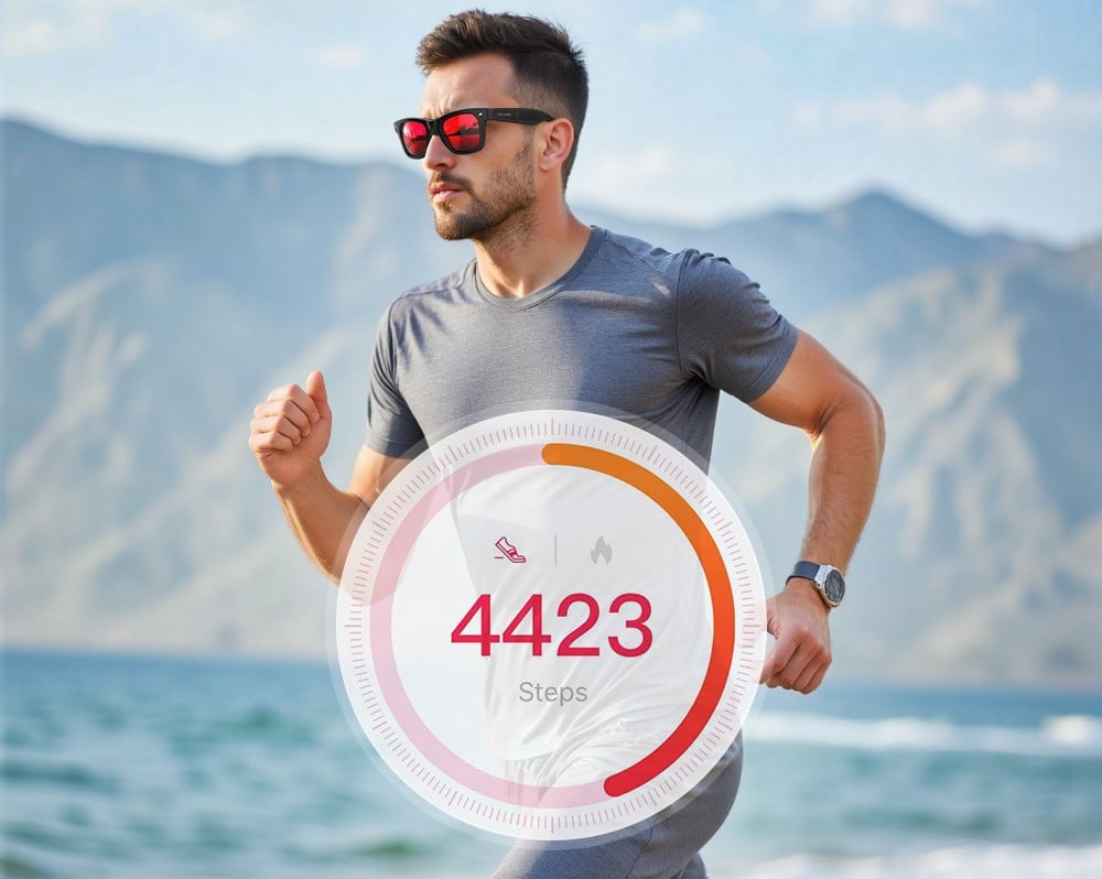 Integráltak a tervezők egy mozgásszenzort is a keretbe, ennek köszönhetően tudja számlálni a nap közben megtett lépéseket. Be lehet állítani célokat, és szólni fog a kiegészítő, mikor ezeket eléri a felhasználó. A jobb szár elején felül egy érdekes plusz érzékelő is megjelent, ami a napsütés erejét, illetve egészen pontosan az UV-sugárzás mértékét lesz képes meghatározni. Egy napszemüvegnél ez mindenképpen egy hasznos fejlesztés. Képes lesz jelezni az eszköz, ha túl magas az UV-sugárzás, és érdemes a felhasználónak bekenni magát naptejjel. Még azt is követni fogja ezáltal a szemüveg, hogy a D-vitamin bevitel miként alakulhatott a nap folyamán.