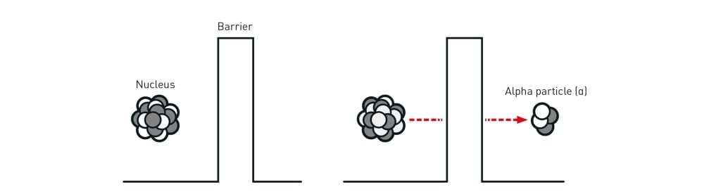 Az egyes részecskék alagúthatásra való képessége jól ismert. 1928-ban George Gamow fizikus rájött, hogy az alagúthatás az oka annak, hogy egyes nehéz atommagok bizonyos módon bomlanak. Az atommagban lévő erők kölcsönhatása egy gátat hoz létre körülötte, amely bent tartja a benne lévő részecskéket. Ennek ellenére azonban az atommag egy kis darabja néha leválhat, kiléphet a gátból és elszökhet – hátrahagyva egy másik elemmé alakult atommagot. Alagúthatás nélkül ez a fajta bomlás nem történhetne meg.