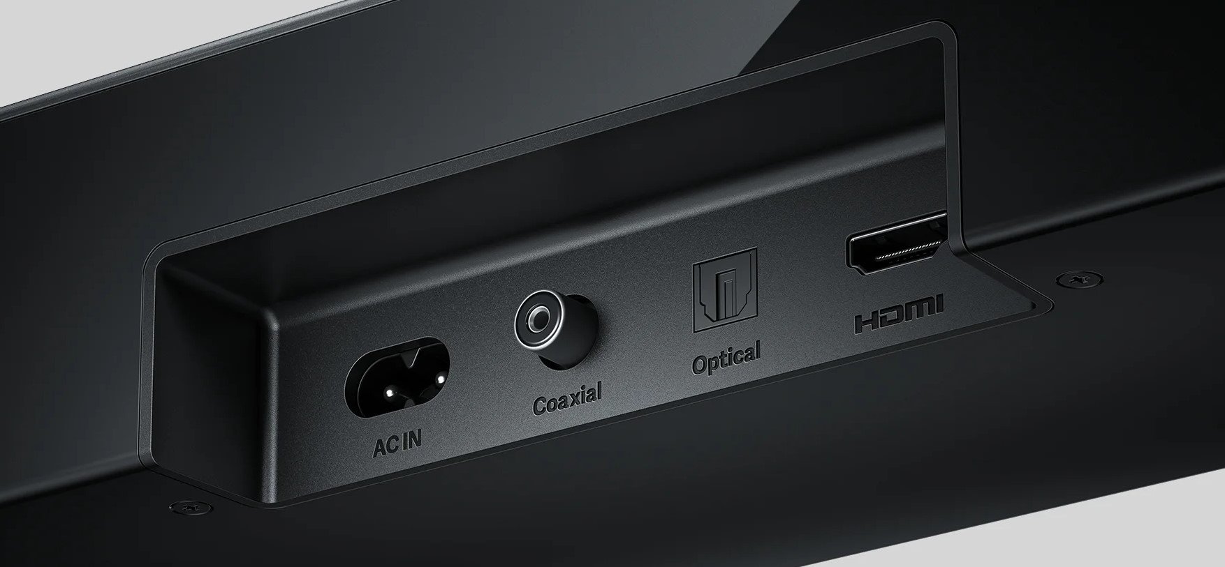 Noha nem egy nagy teljesítményű készülékkel van dolgunk, de 840 milliméter széles lett, így tud kellemes teret adni a hangjának. Mindössze 60 milliméter magas és 87 milliméter mély a hangprojektor. Akár falra is fel lehet szerelni a 2,3 kg-os terméket, ehhez biztosított a csavaros rögzítési felület, és a kábelek helye is úgy lett kialakítva, hogy a falra rögzítést ne akadályozza.