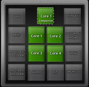 Az már a kevésbé érdekes tények közé tartozik, hogy a Tegra 2 utódja nem kettő, hanem négy darab ARM alapú processzormaggal fog rendelkezni, az viszont már jóval meglepőbb, hogy lesz egy ötödik processzormag is, amely kiegészítő CPU magként funkcionál. Ez az ötödik processzormag alacsony órajelen, rendkívül alacsony fogyasztás mellett ketyeg majd. A kevésbé processzor-intenzív feladatok alkalmával erre a CPU magra támaszkodik majd a rendszer. Az ötödik mag aktív lesz, miközben a maradék négy CPU magot – amelyek inkább teljesítményre vannak kihegyezve – kikapcsolja a rendszer. Amennyiben a terhelés indokolja, akkor az ötödik, úgynevezett Companion Core kikapcsol, a Kal-El CPU magjai pedig folyamatosan aktiválódnak – egyesével „ébrednek fel” – ahogy a terhelés mértéke növekszik.