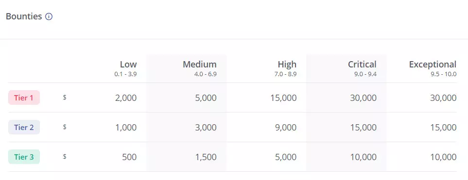 A hiba súlyosságától függően 500 dollártól egészen 30 000 dollárig tartanak a sávok, a 30 000 dolláros szintet viszont csak kivételesen nagy veszélyt jelentő sebezhetőséggel lehet elérni, és ez az összeg egyébként már egy kritikus besorolású bug esetében is kifizetésre kerülhet. A kritikus és a kivételesen veszélyes hibák díjazása lényegében megegyezik, ami egy kissé fura, ezt a lenti táblázat is megerősíti.